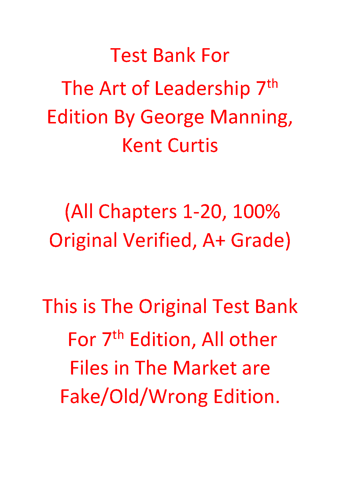 Test Bank for The Art of Leadership, 7th Edition by George Manning, Kent Curtis & Steve McMillen