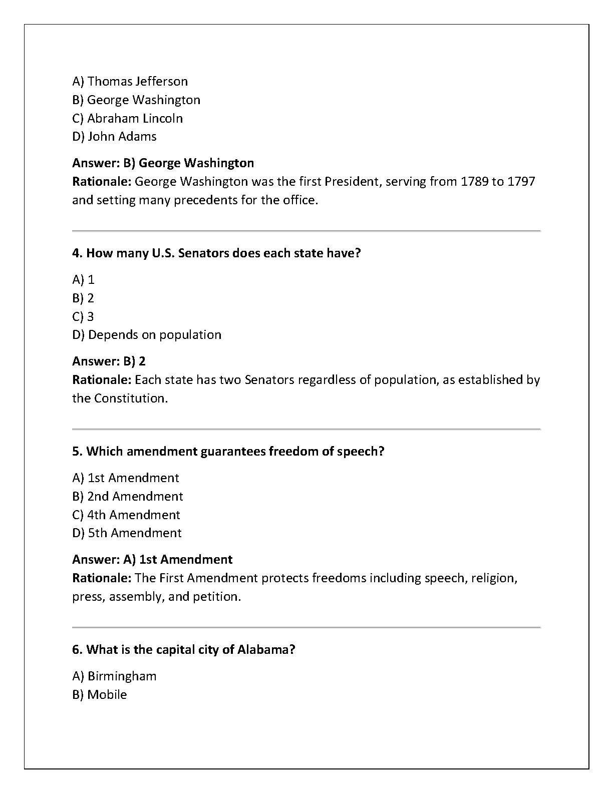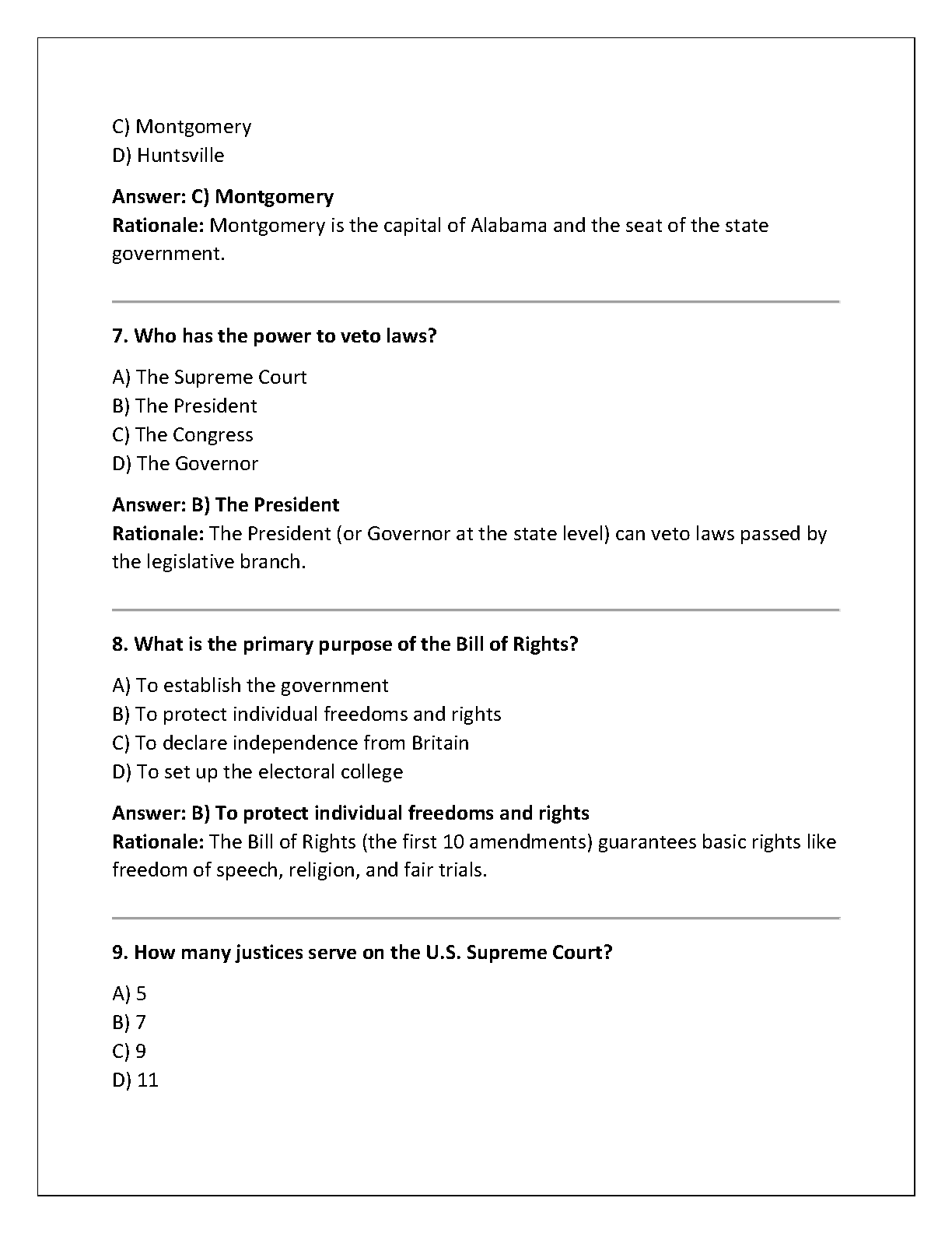 Ace your Alabama Civic Literacy Exam with this comprehensive 2025/2026 study guide! This essential resource is packed with a wide range of practice questions, each accompanied by a 100% verified correct answer and a detailed rationale. Go beyond simple memorization and gain a deep understanding of the concepts required to pass. Our expertly crafted guide is designed to help you prepare efficiently, build confidence, and secure a passing grade on your very first attempt, eliminating the stress of resits. Get instant access and start studying smart today!