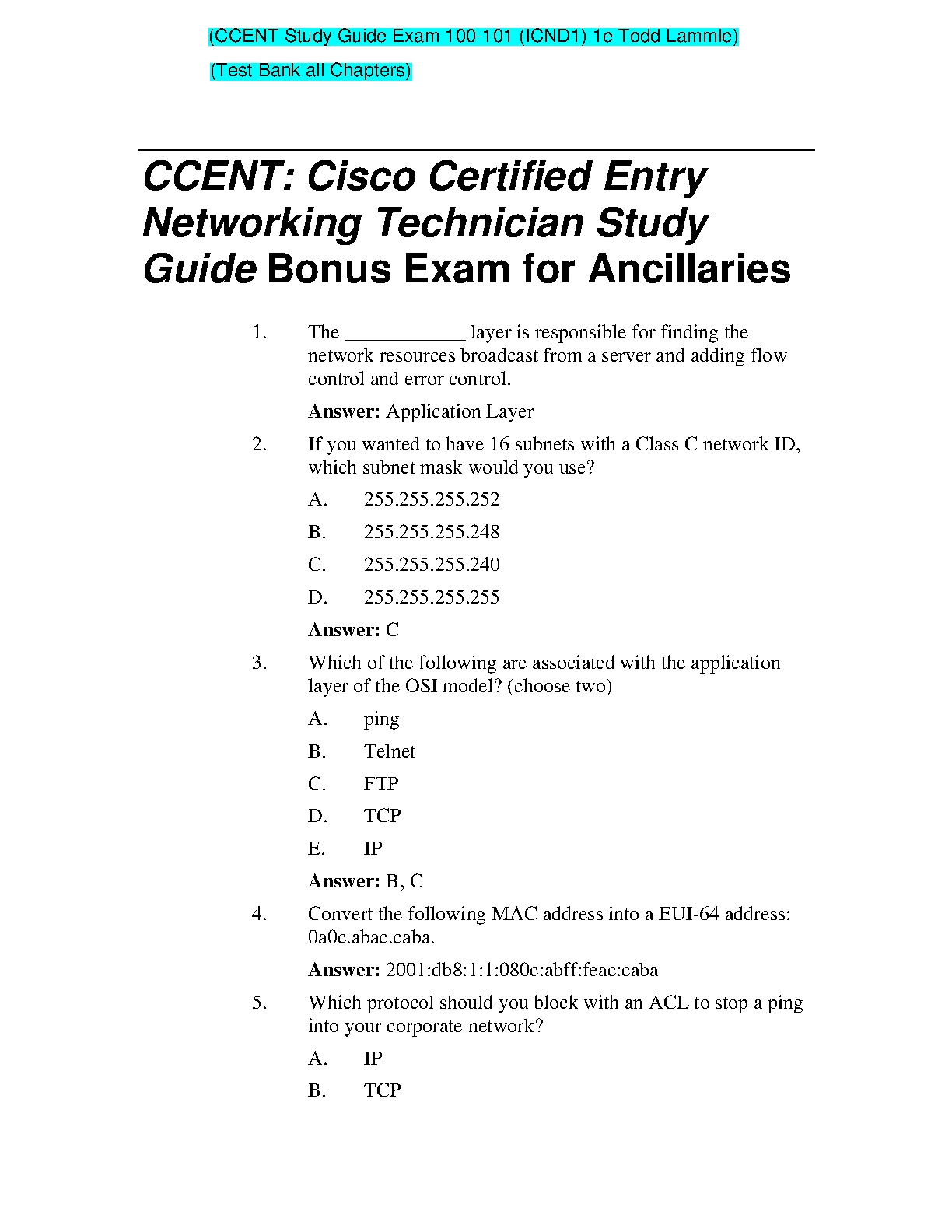 TEST BANK FOR CCENT Study Guide Exam 100-101 (ICND1) 1ST EDITION BY Todd Lammle. DOWNLOAD on www.hackedexams.com INSTANTLY.