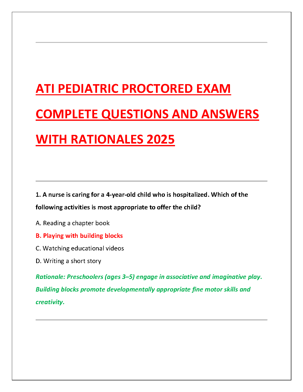 ATI Pediatric Proctored Exam Test Bank 2025/2026: Complete Questions, Answers & Rationales to Ace Your Nursing Exam