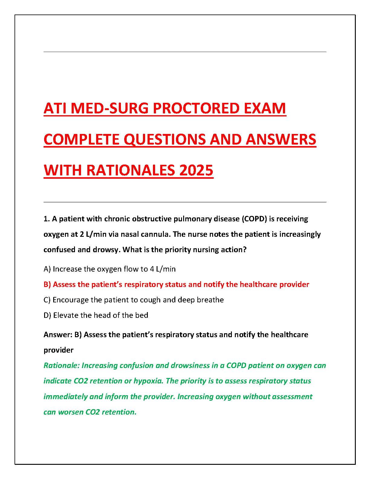 ATI Med-Surg Proctored Exam 2025/2026 Test Bank: Ace Your Exam with Verified Questions, Answers, and In-Depth Rationales