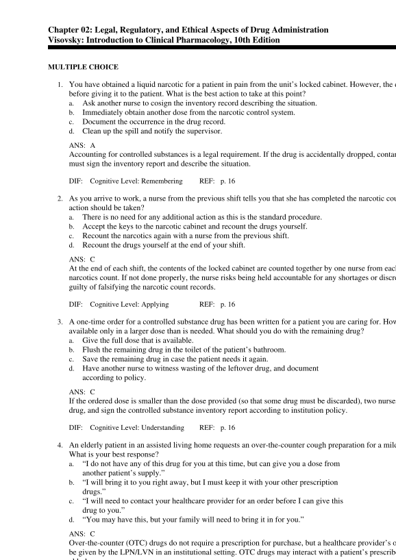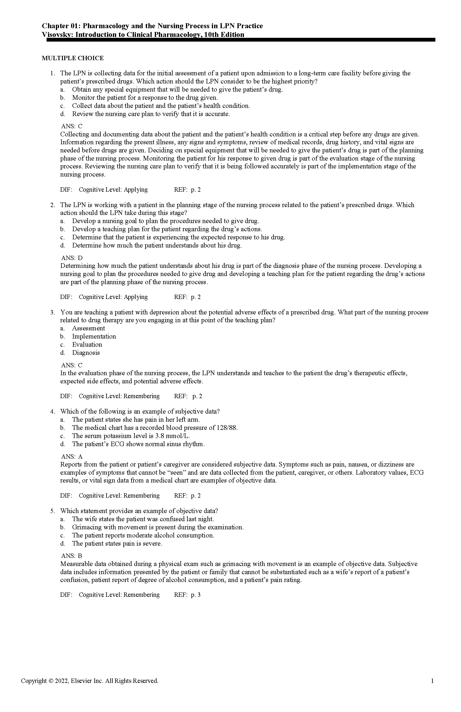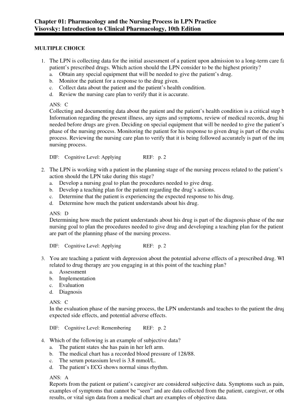 Visovsky: Introduction to Clinical Pharmacology, 10th Edition TEST BANK