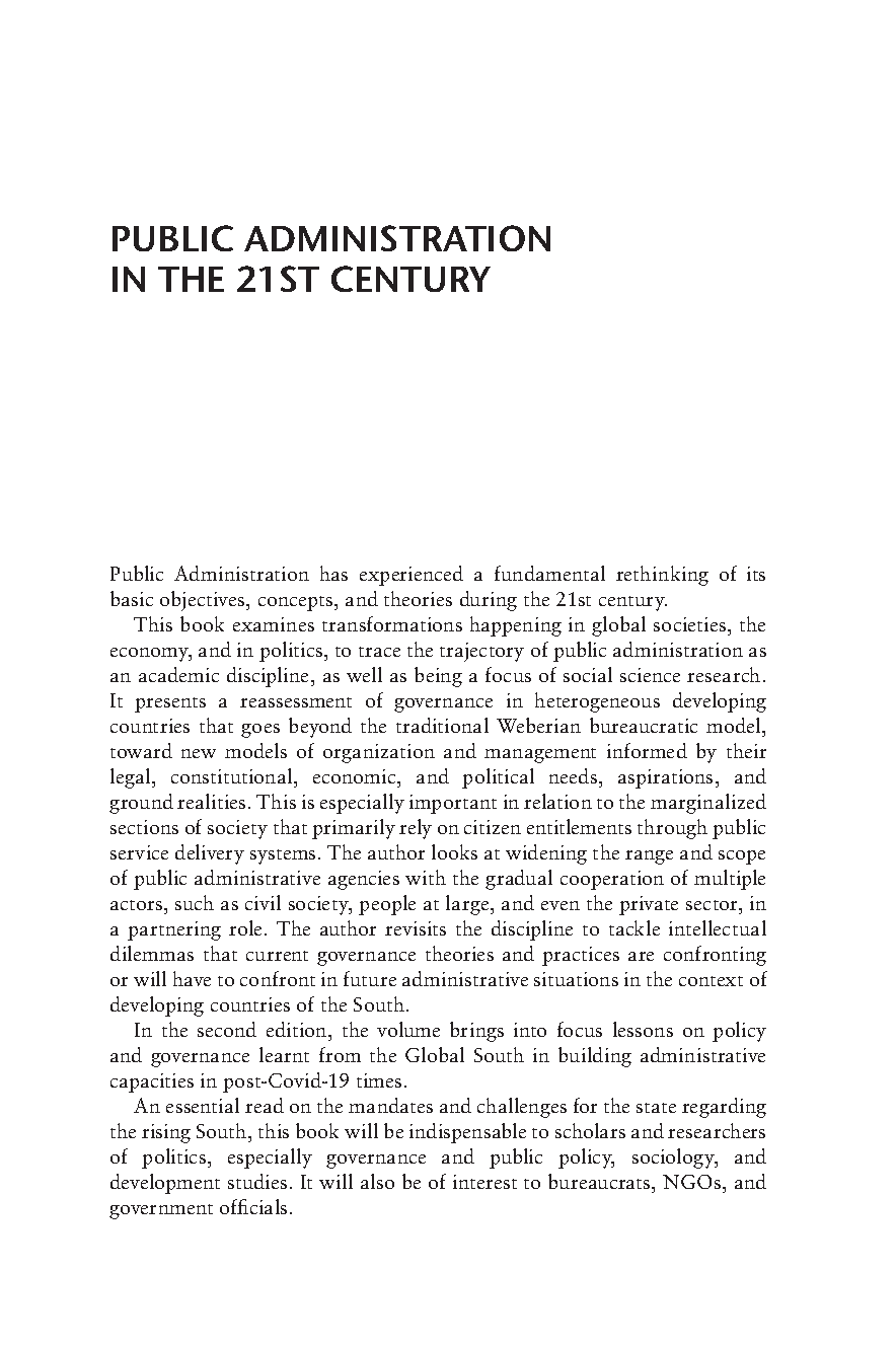 Unlock exam success for the 2025/2026 academic year with this essential guide to 'Public Administration in the 21st Century: A Global South Perspective,' Second Edition. Authored by Rumki Basu, this comprehensive resource delves into the core theories, contemporary practices, and unique challenges of public administration within the Global South. Explore critical topics such as the legacy of colonialism, the dynamics of globalization, and the pursuit of sustainable development and effective governance. This study aid is meticulously designed to provide you with the in-depth knowledge and critical perspectives needed to excel in your coursework and pass your exams on the first try, eliminating the need for resits. Gain a decisive edge in your studies with this up-to-date and highly relevant textbook.