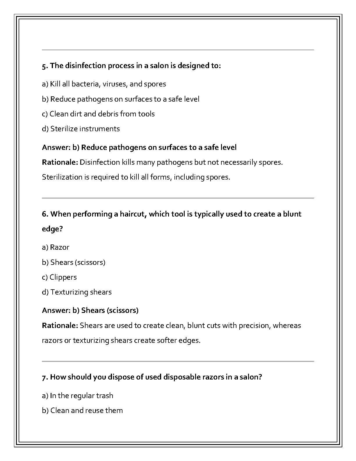 Unlock your potential and pass the Kentucky Cosmetology & Barber State Board Exam on your first attempt with our latest 2025/2026 Test Bank. This comprehensive resource is packed with a wide range of practice questions that mirror the actual exam format. Each question comes with a verified correct answer and a detailed rationale, explaining the 'why' behind the 'what'. This approach ensures you not only memorize answers but truly understand the core concepts of cosmetology and barbering. Prepare with confidence, identify your weak spots, and master the material needed to become a licensed professional in Kentucky. Say goodbye to exam anxiety and hello to your new career!