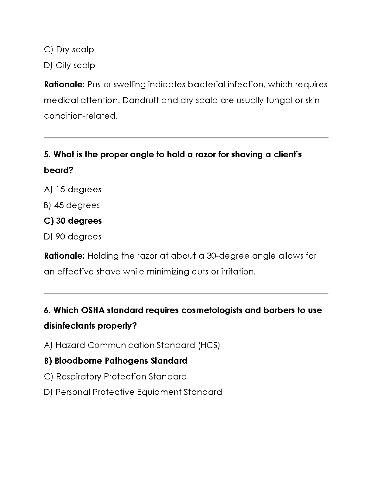 Ace your Maine State Board of Cosmetology and Barber licensing exam on the very first try with our comprehensive 2025 Test Bank. This essential study guide features a complete collection of practice exam questions, each with verified correct answers and detailed rationales to deepen your understanding. The multiple-choice format mirrors the actual exam, providing you with the confidence and knowledge needed to succeed. Don't risk a resit—prepare with the best and most up-to-date resource available for the 2025/2026 testing cycle.