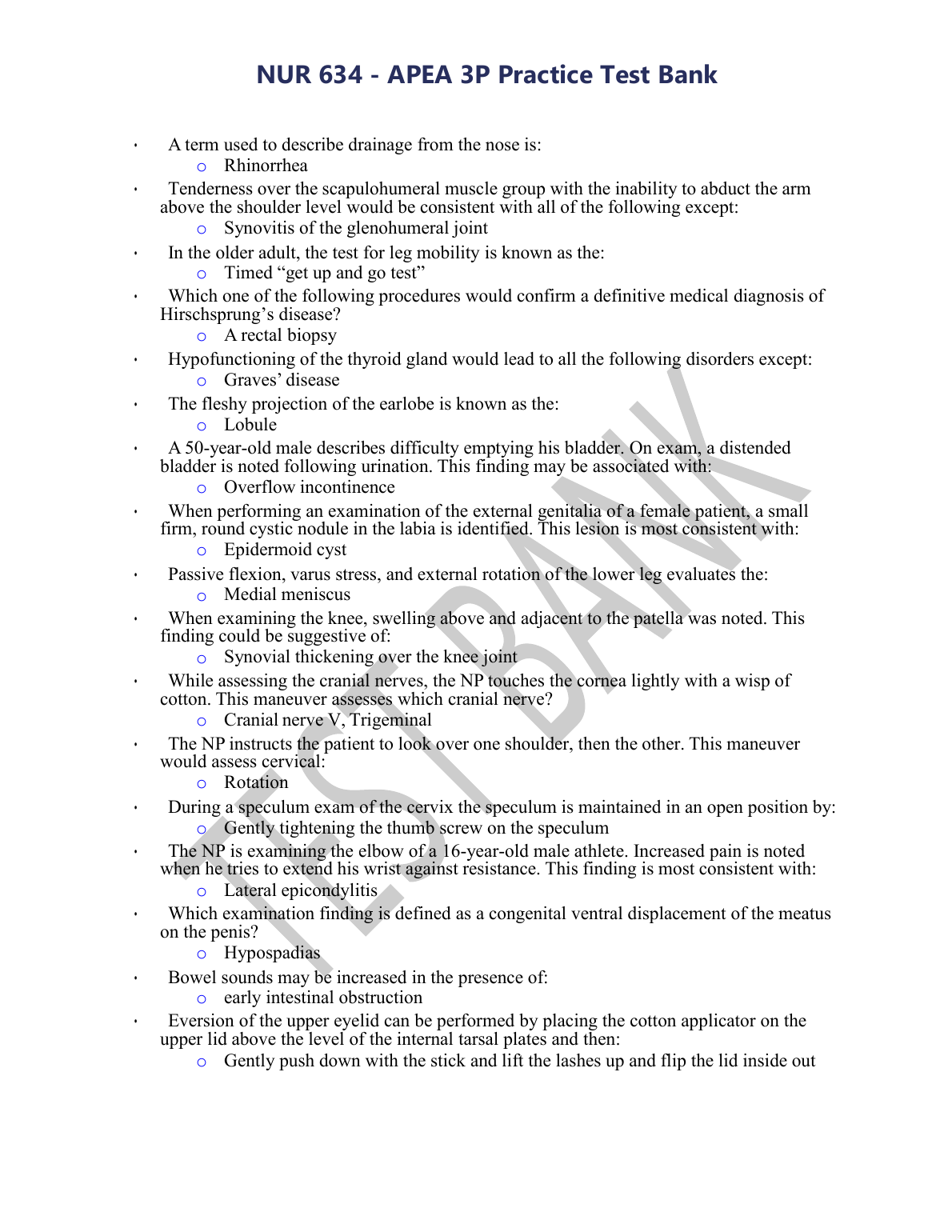 NUR 634 - APEA 3P Practice Test Bank UPDATED 2023. DOWNLOAD ON www.hackedexams.com INSTANTLY.