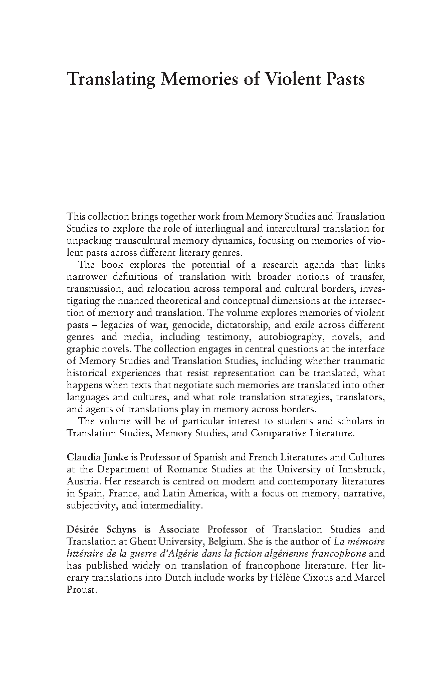 Unlock academic success with our comprehensive guide to 'Translating Memories of Violent Pasts.' This resource delves into the crucial dialogue between memory studies and translation studies, exploring how traumatic historical events are communicated across cultures and generations. Edited by Claudia Jünke and Désirée Schyns, this guide provides essential insights and critical perspectives. Updated for the 2025/2026 academic year, this is the definitive tool to help you master complex concepts and pass your exams with confidence on the first attempt, making resits a thing of the past.