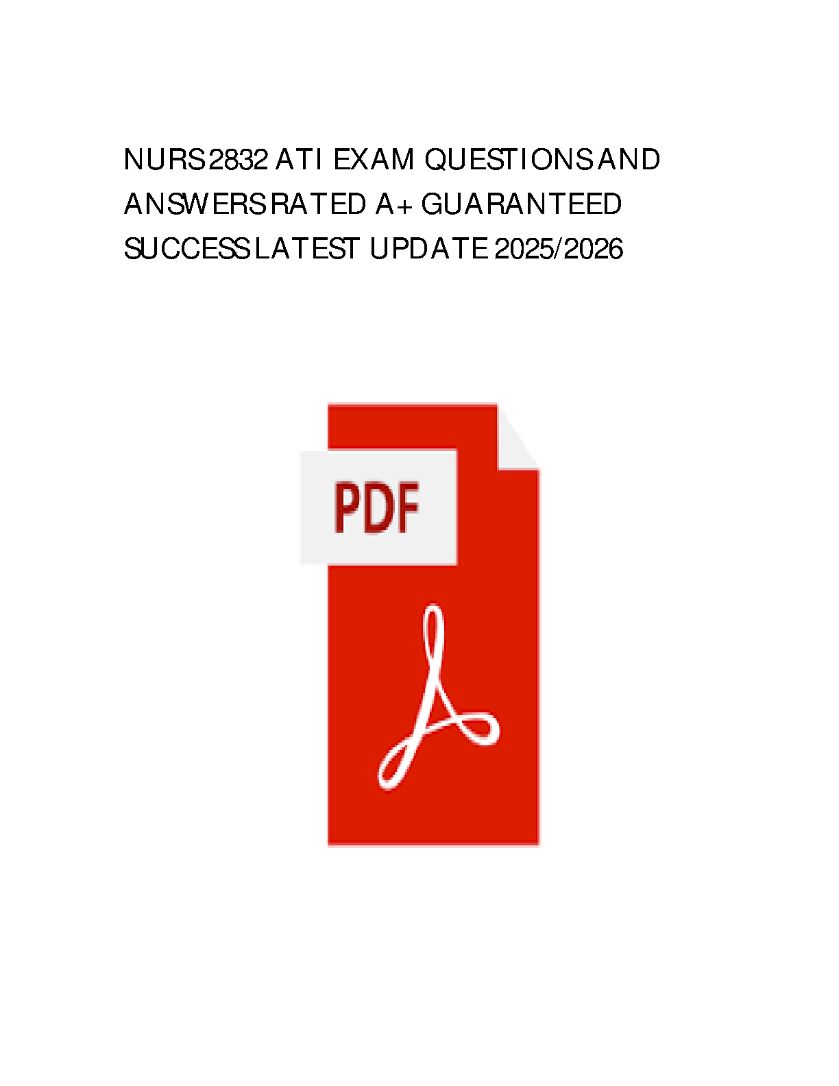 Unlock success in your NURS 2832 course with our premier ATI Exam study guide, fully updated for the 2025/2026 academic year. This comprehensive resource is packed with A+ rated questions and verified answers, covering every key concept you'll face on the test. Designed to ensure you pass on your first attempt, this guide is your key to mastering the material, boosting your confidence, and achieving top grades without the stress of resits. Download now and start studying smarter!