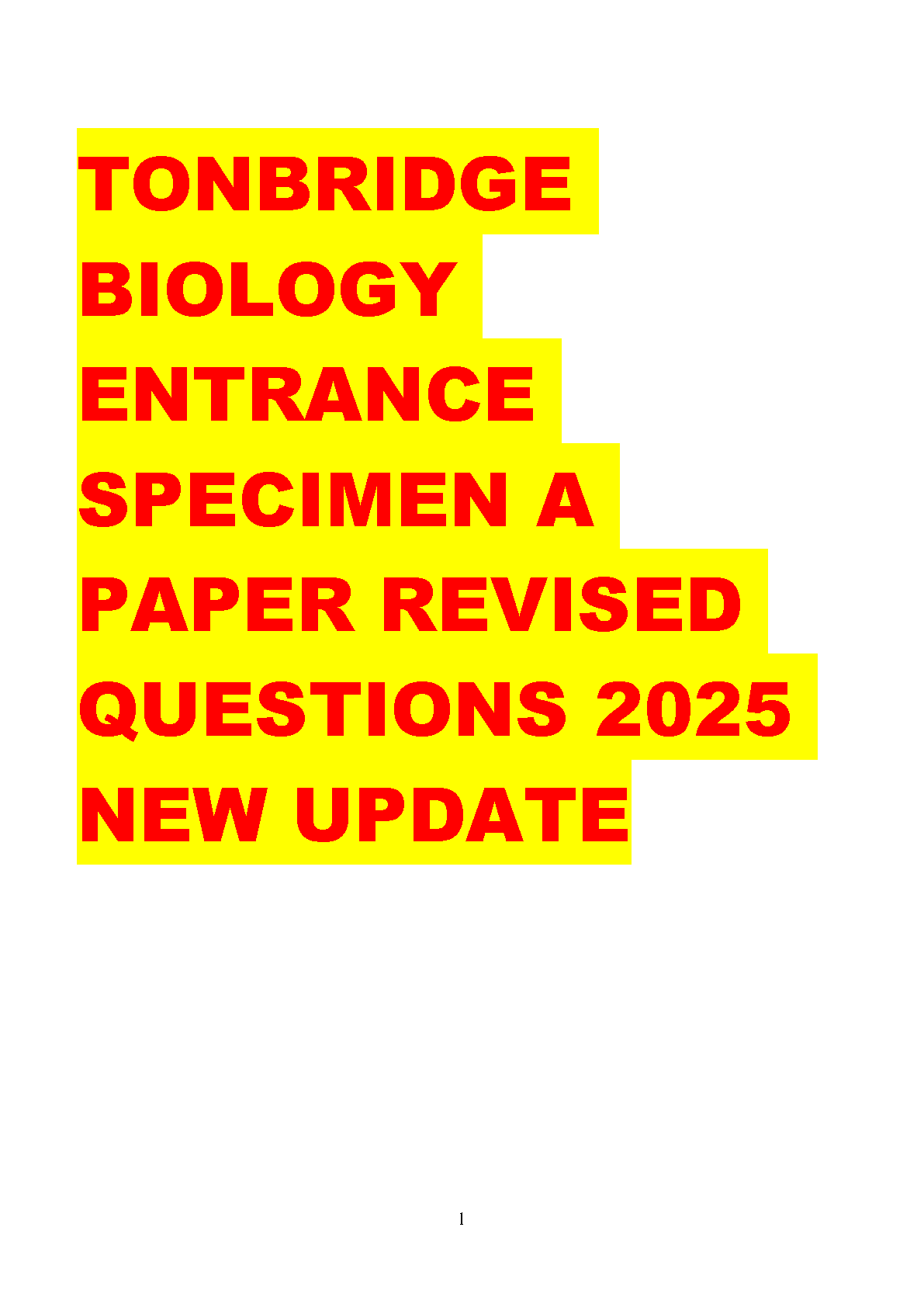 Tonbridge School Biology Entrance Exam Specimen Paper A: 2025-2026 Latest Revised Questions to Pass First Time