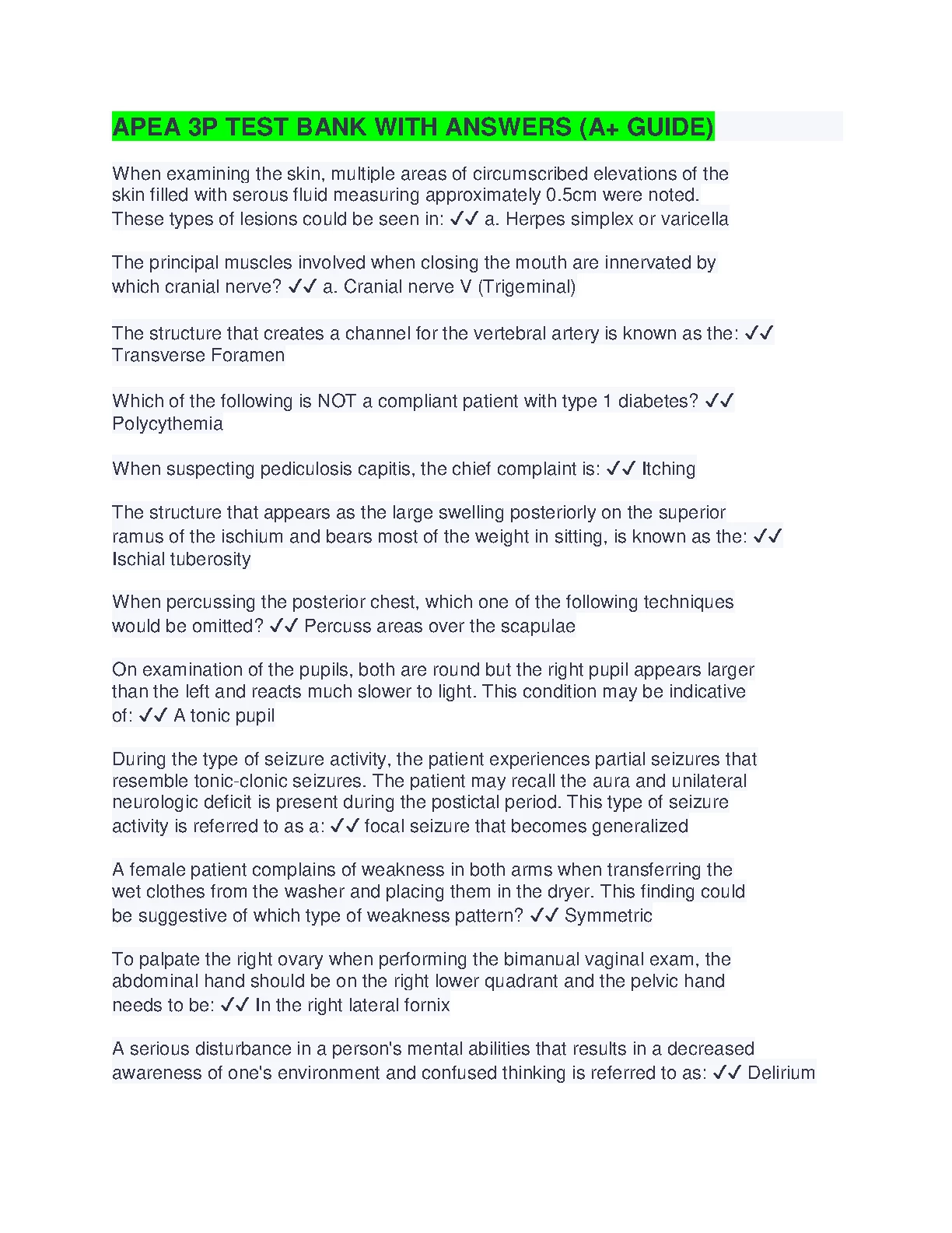APEA 3P TEST BANK WITH ANSWERS (A+ GUIDE) FOR 2023/2024