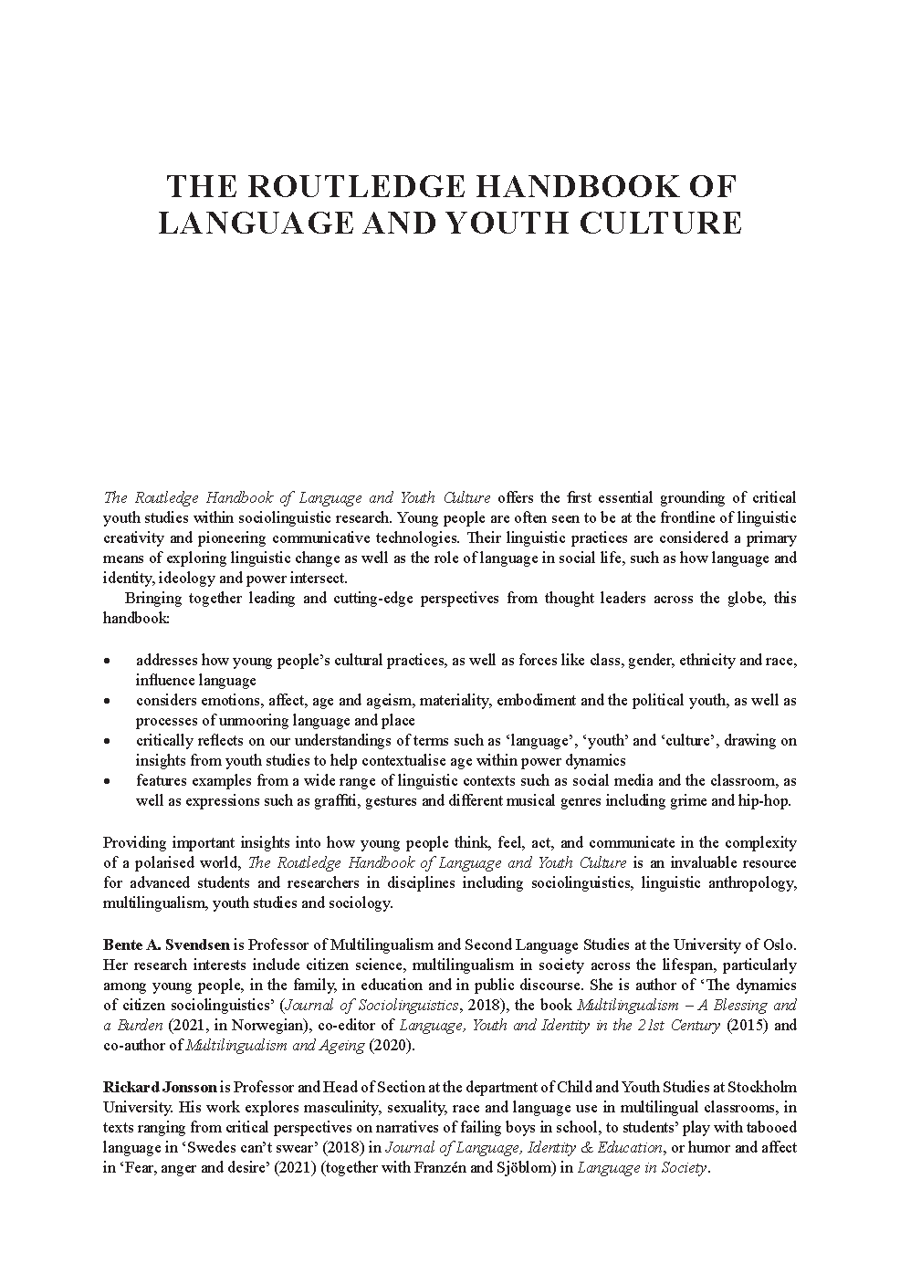 Latest 2025/2026 The Routledge Handbook of Language and Youth Culture, 1st Edition by Bente A. Svendsen & Rickard Jonsson | First-Attempt Exam Success Guide