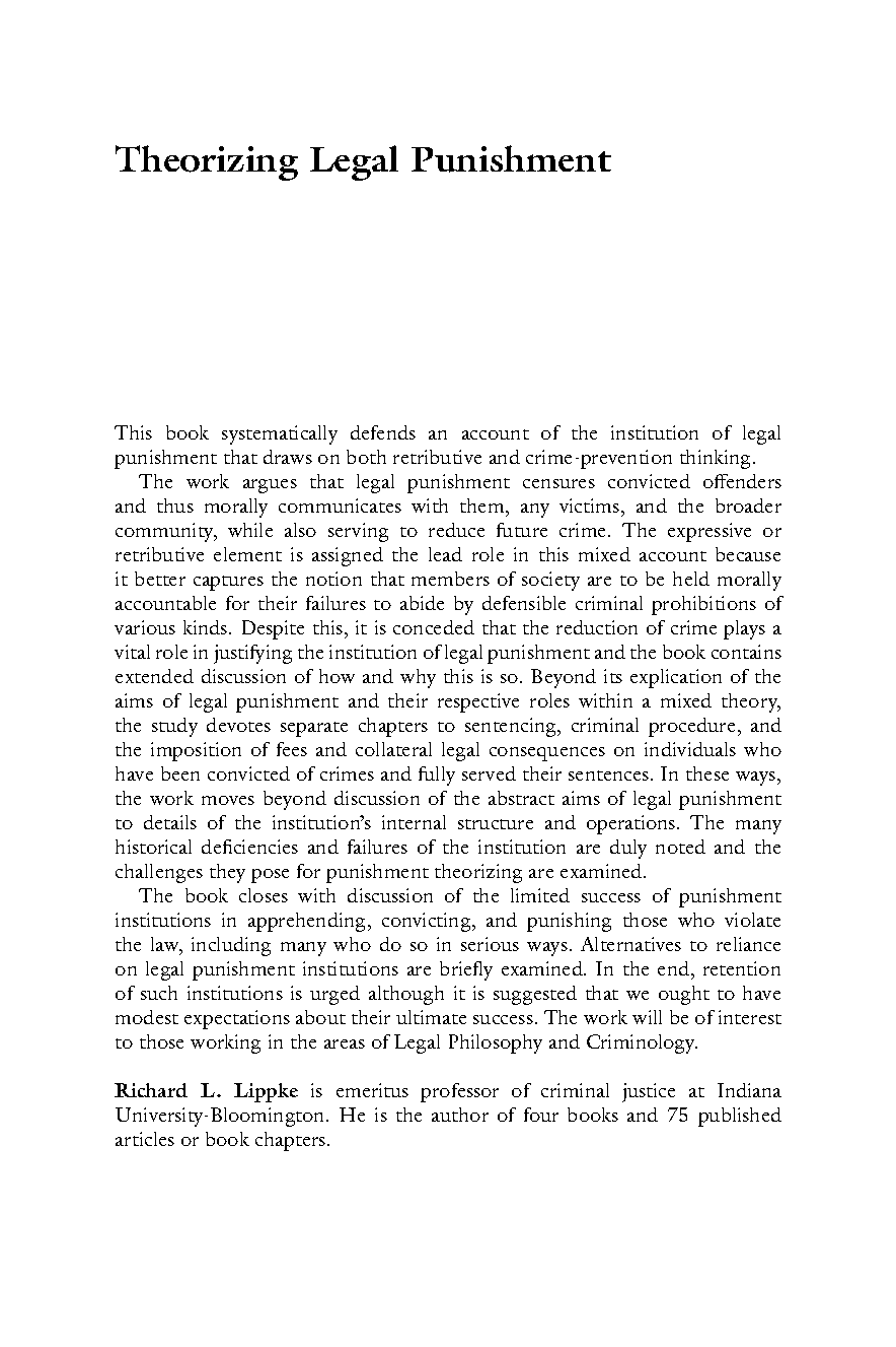 Unlock a deep understanding of legal philosophy with this essential resource for the 2025/2026 academic year. 'Theorizing Legal Punishment' by Richard L. Lippke offers a complete breakdown of the core theories justifying legal punishment, including retributivism, consequentialism, and hybrid models. This guide is expertly designed to clarify complex concepts, providing the critical insights needed to excel in your coursework and pass your exams on the very first attempt. Avoid resits and master the subject with these comprehensive elaborations on the aims and limits of punishment in a modern legal system.
