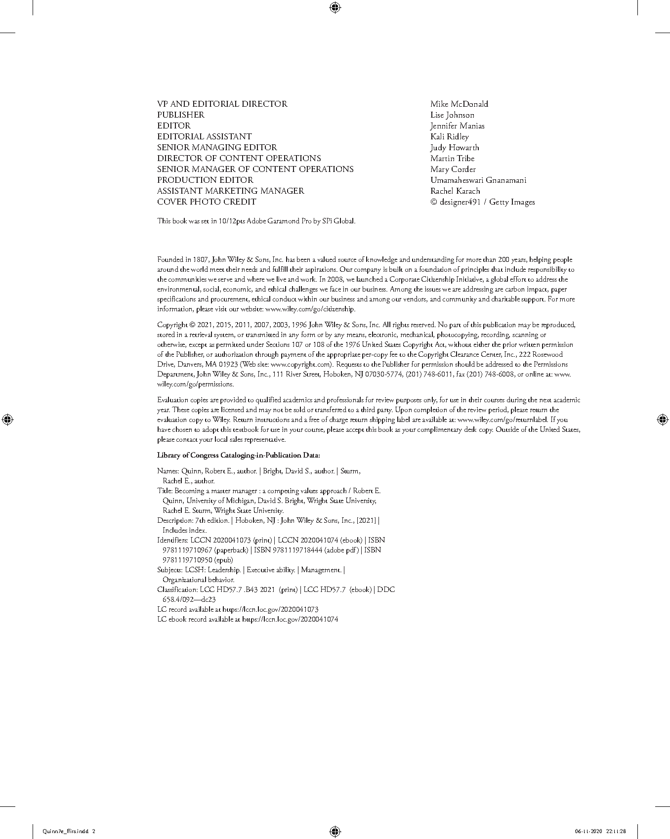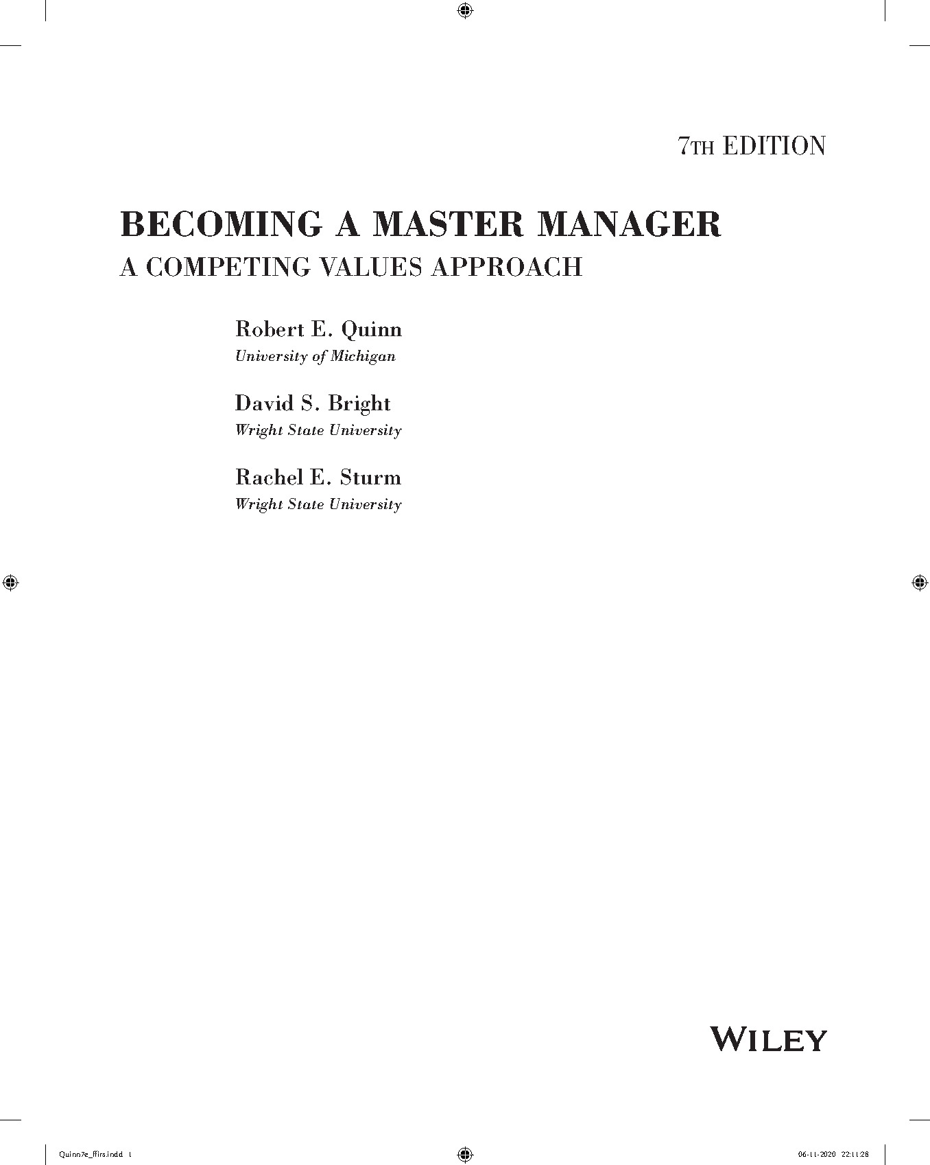 Test Bank for Becoming a Master Manager: A Competing Values Approach, 7th Edition by Robert E. Quinn, David S. Bright, Rachel E. Sturm