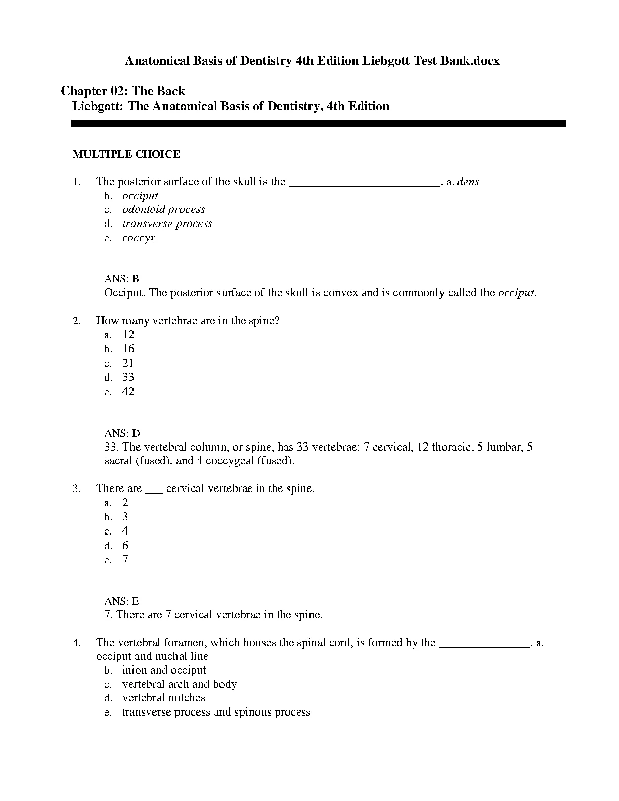 Anatomical Basis of Dentistry 4th Edition by Liebgott Test Bank. DOWNLOAD on www.hackedexams.com INSTANTLY.