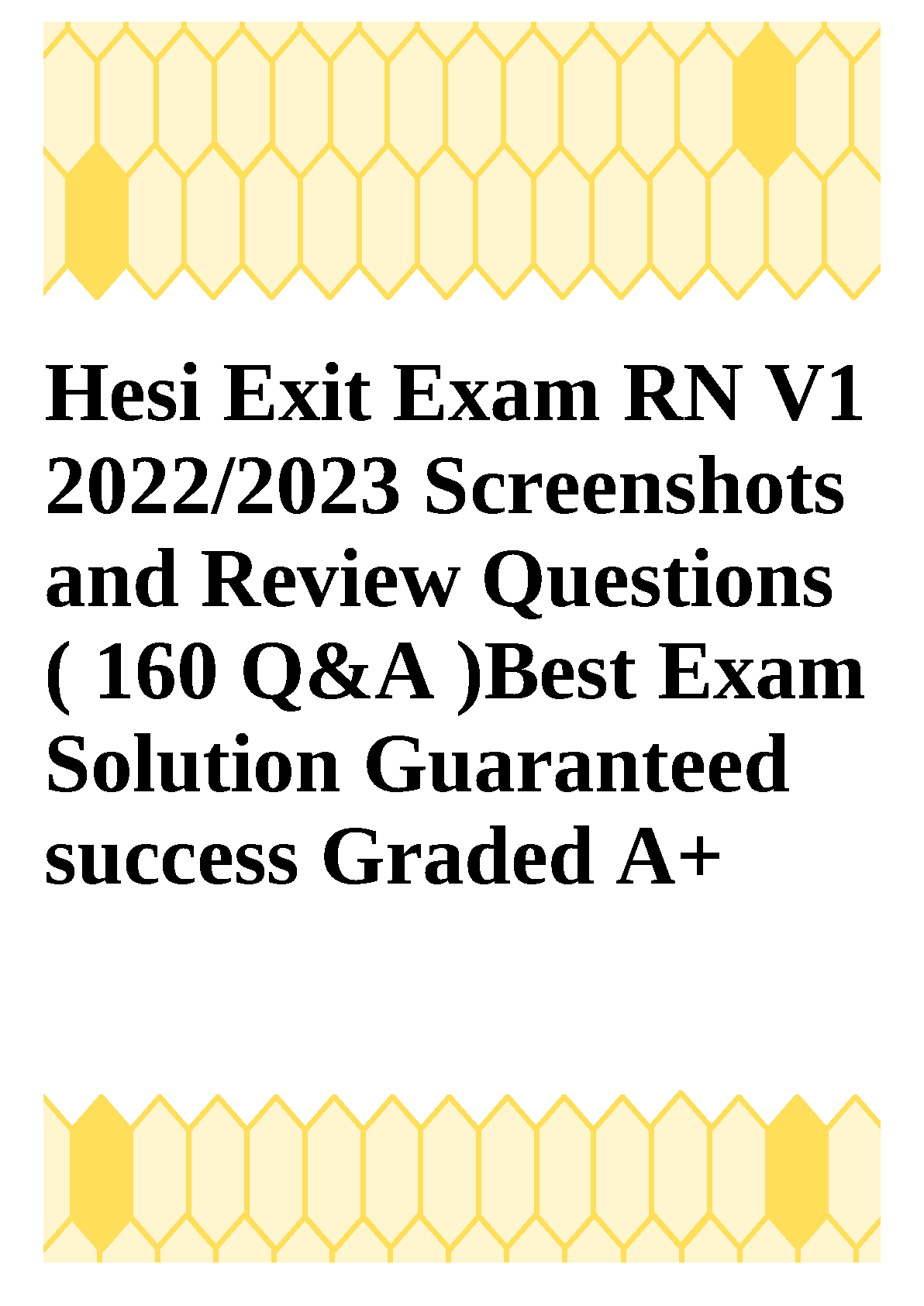 Prepare to excel on your HESI Exit Exam with our comprehensive RN V1 Test Bank, fully updated for the 2025/2026 academic year. This essential study guide features 160 meticulously curated questions and detailed answers (Q&A) designed to mirror the actual exam format. With this proven exam solution, you can build confidence, master key nursing concepts, and secure a top grade. Pass your HESI RN Exit Exam on the first try and step confidently into your nursing career!