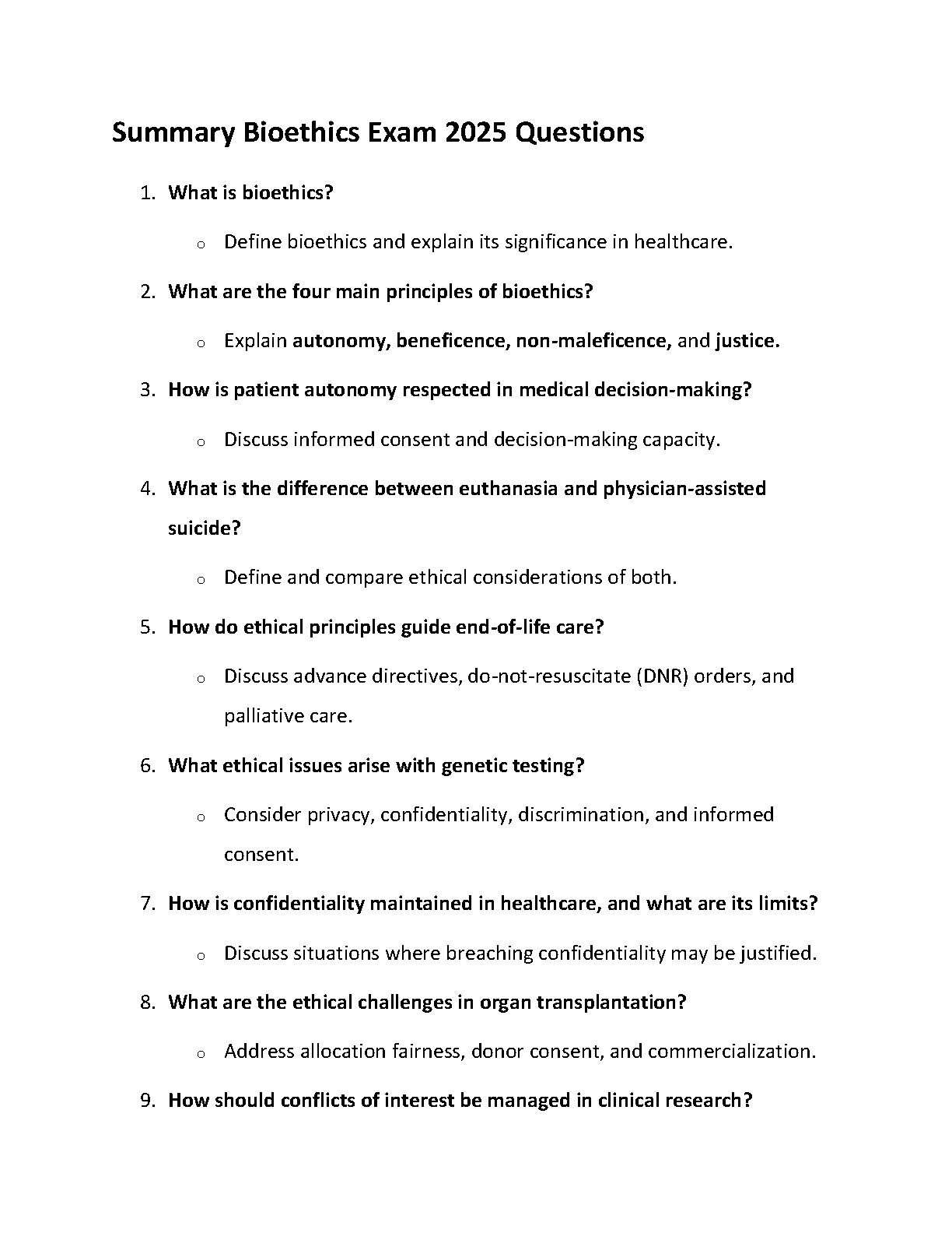 Master Bioethics: 2025/2026 Exam Questions & Key Concepts Guide to Pass on the First Attempt