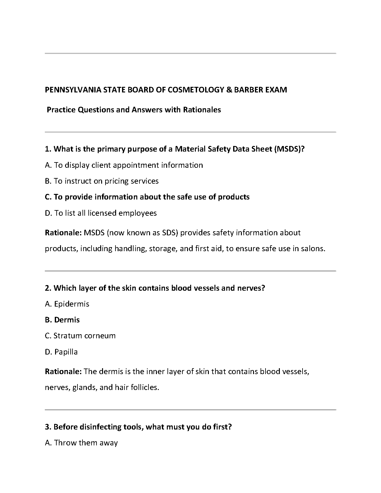 Pennsylvania State Board of Cosmetology & Barber Exam Test Bank 2025/2026: Practice Questions with Rationales for First-Attempt Success