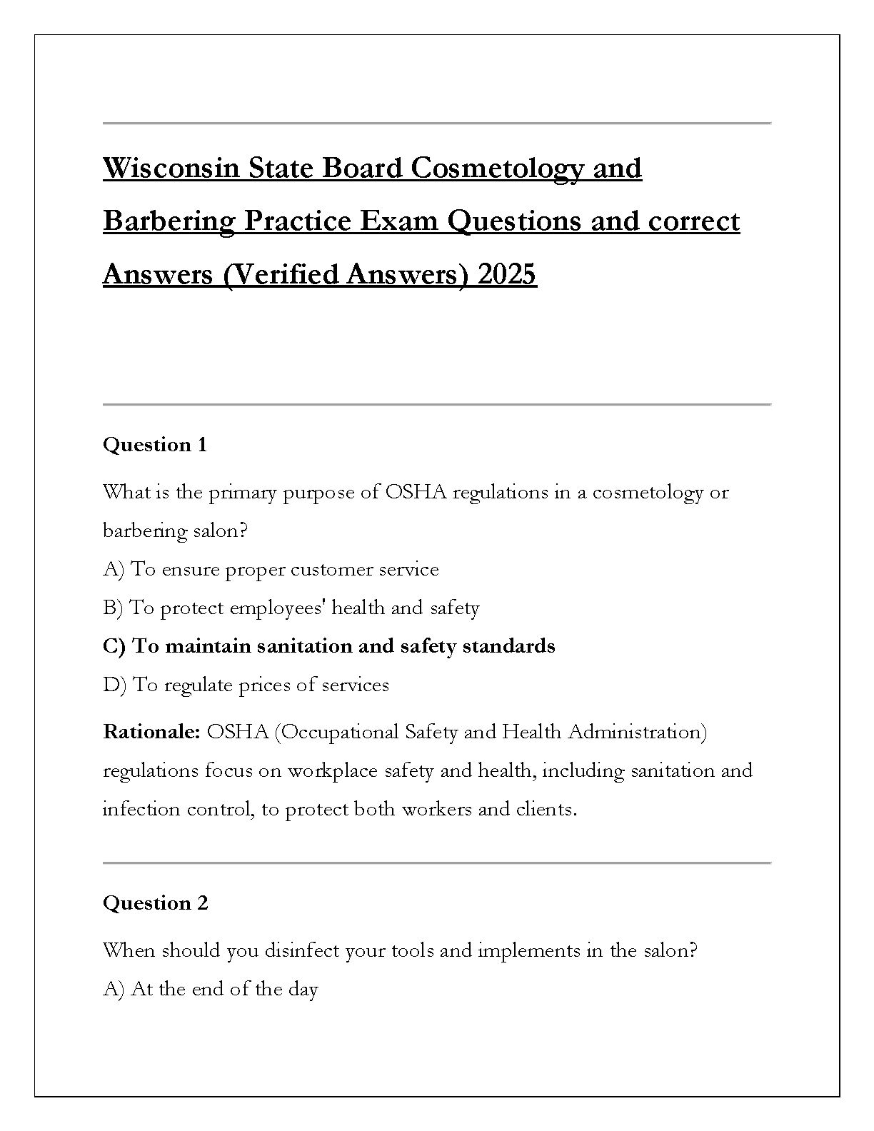 Wisconsin State Board Cosmetology & Barbering Test Bank 2025/2026: Verified Practice Exam Questions and Detailed Answers