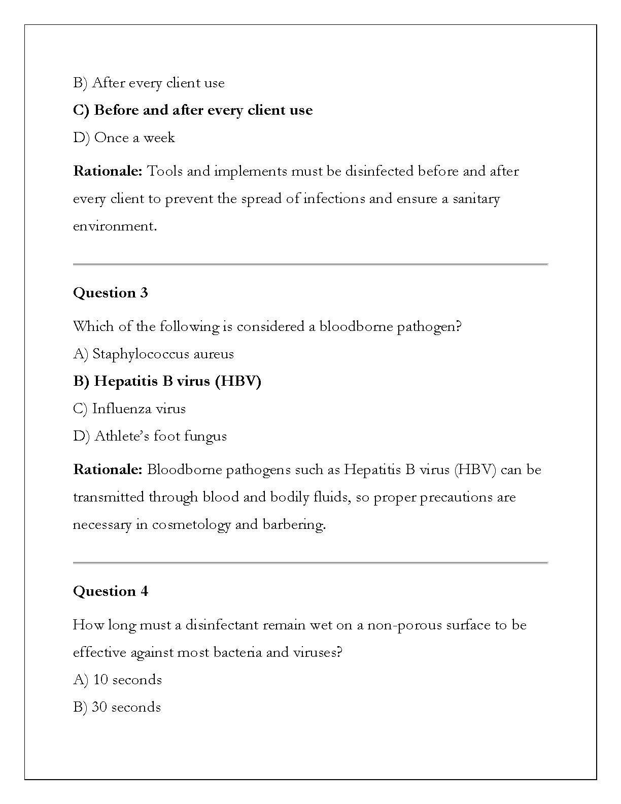Ace your Wisconsin State Board licensing exam for Cosmetology and Barbering with our newly updated 2025/2026 practice test bank! This essential study guide is packed with verified questions and correct answers, complete with detailed rationales to deepen your understanding of key concepts like sanitation, safety, and client services. Designed to mirror the actual state board exam, this resource is your key to passing on the first attempt and avoiding costly resits. Get fully prepared and confident for your certification.