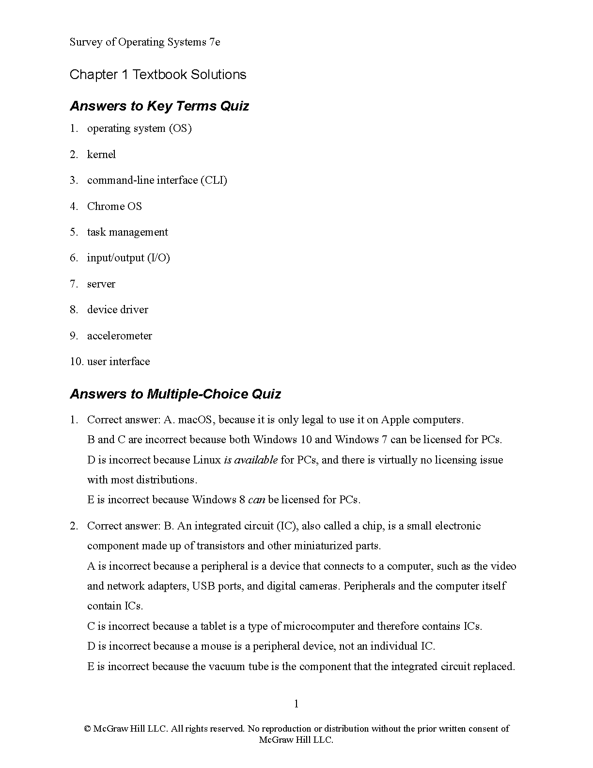 Unlock your full potential with the official Test Bank for 'Survey of Operating Systems, 7th Edition' by Flynn and McHoes. This resource provides complete, verified solutions for Chapter 1, including detailed answers to the Key Terms Quiz and Multiple-Choice Quiz. Each explanation is crafted to enhance your understanding of core concepts, ensuring you're fully prepared to excel in your exams and master the fundamentals of operating systems.