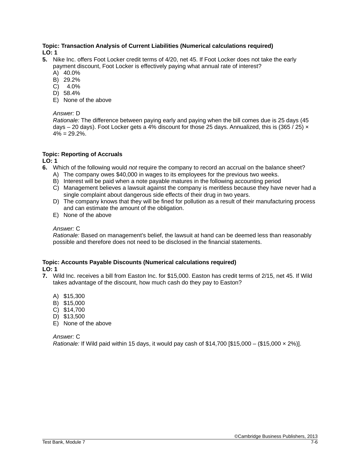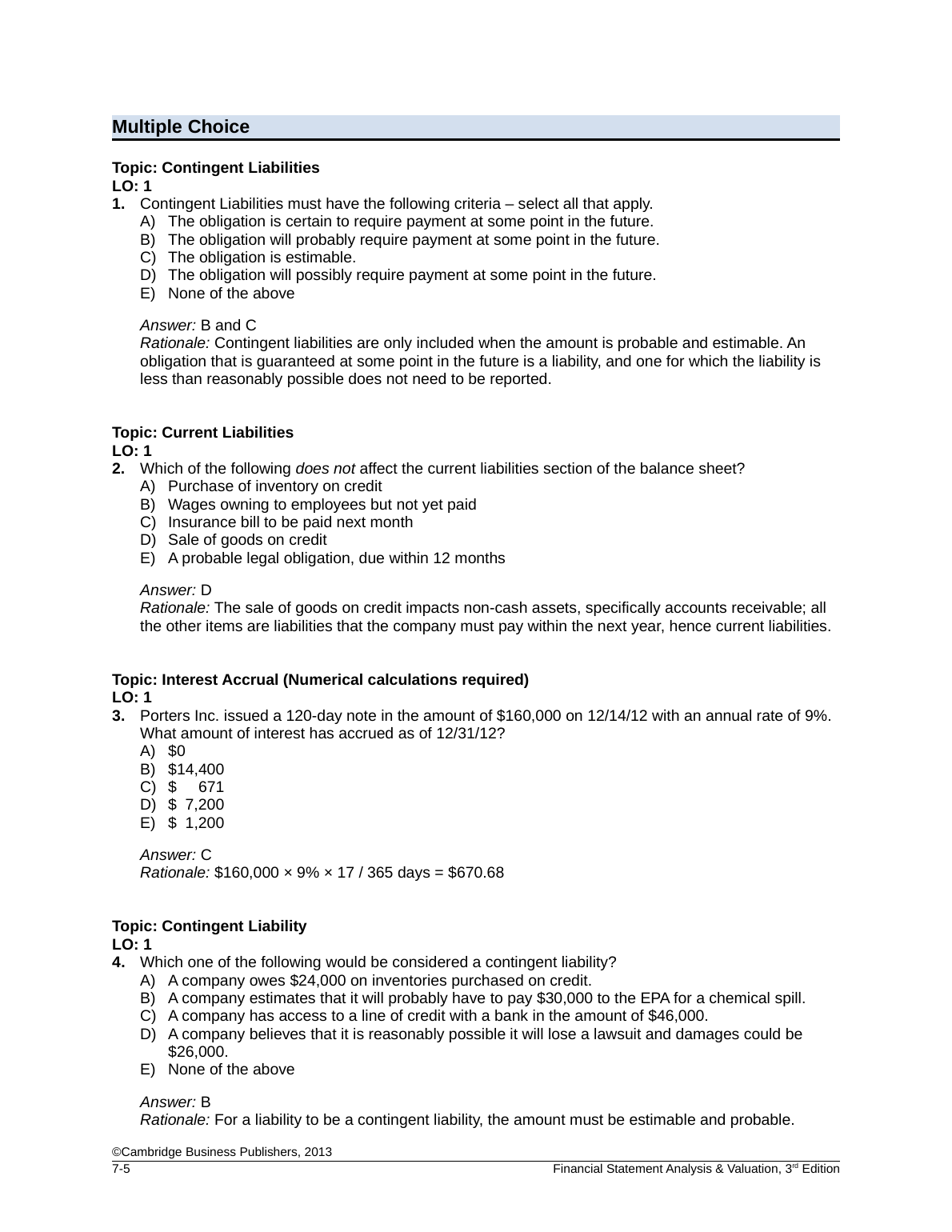 TEST BANK FOR Financial Statement Analysis & Valuation, 3rd Edition Module 8: Reporting and Analyzing Nonowner Financing, Cambridge Business Publishers