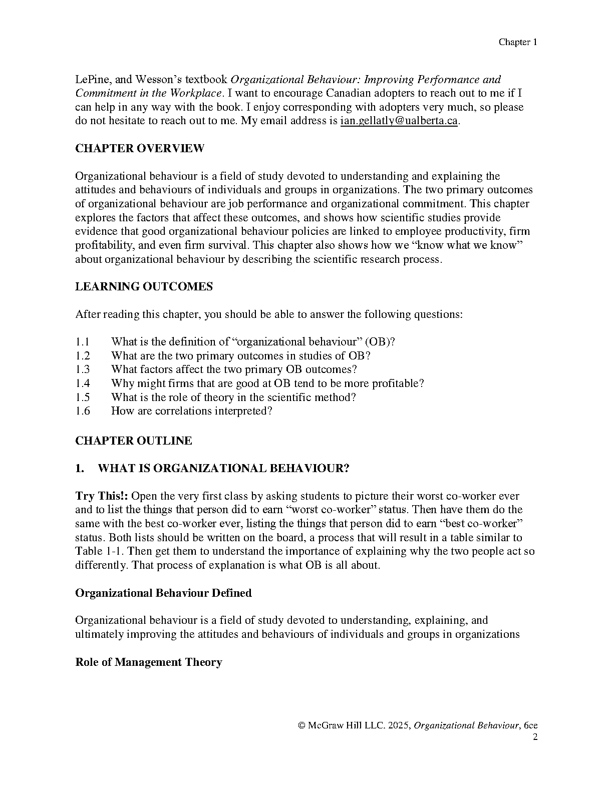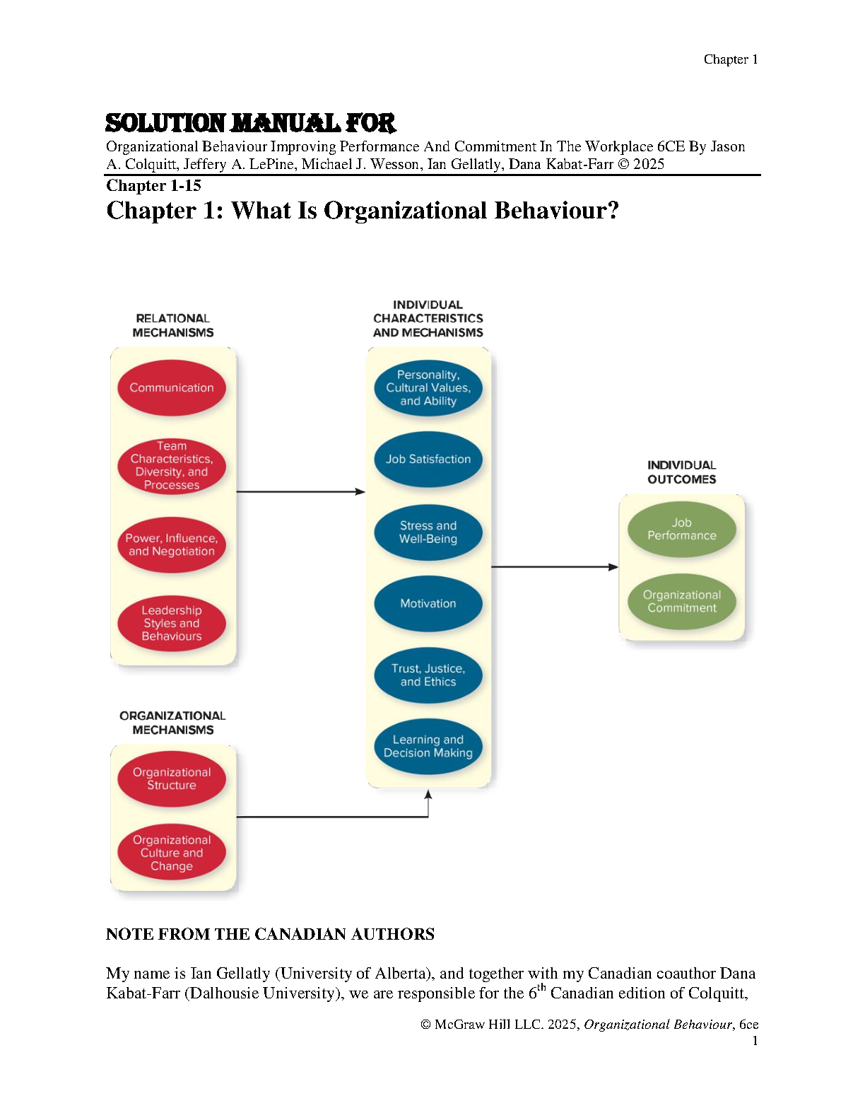 Master your Organizational Behaviour course with the complete Solution Manual for the 6th Canadian Edition of 'Organizational Behaviour: Improving Performance and Commitment in the Workplace' by Colquitt et al. This indispensable resource provides instant access to detailed, step-by-step answers for all questions and exercises covering Chapters 1-15. Deepen your understanding of key topics like motivation, team dynamics, and leadership to excel in your studies and prepare effectively for exams. This is the ultimate study companion to help you grasp complex concepts and boost your academic performance.