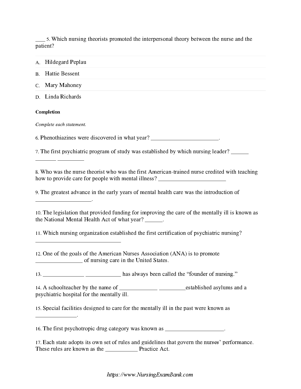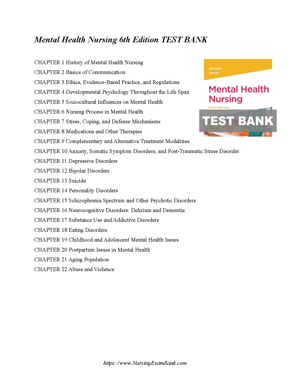 Test Bank for Mental Health Nursing, 6th Edition by Linda M. Gorman and Robynn F. Anwar