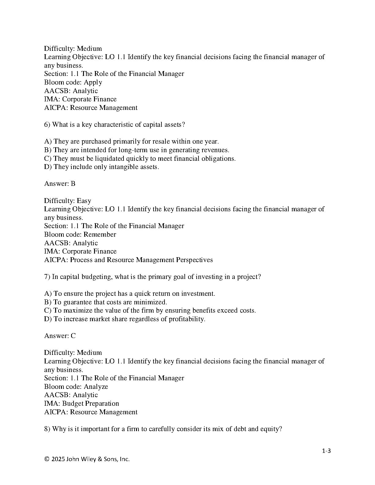 Unlock your full potential and excel in your finance course with the official Test Bank for 'Fundamentals of Corporate Finance, 6th Edition.' Authored by the expert team of Robert Parrino, Thomas W. Bates, Stuart L. Gillan, and David S. Kidwell, this resource is meticulously designed to mirror your actual exams. Featuring a complete collection of questions with detailed, verified answers for all 21 chapters, this 2025 edition is the ultimate study tool. Enhance your understanding of key financial principles, practice with exam-level questions, and gain the confidence to ace your tests. Ideal for students aiming for top grades and a thorough mastery of corporate finance.