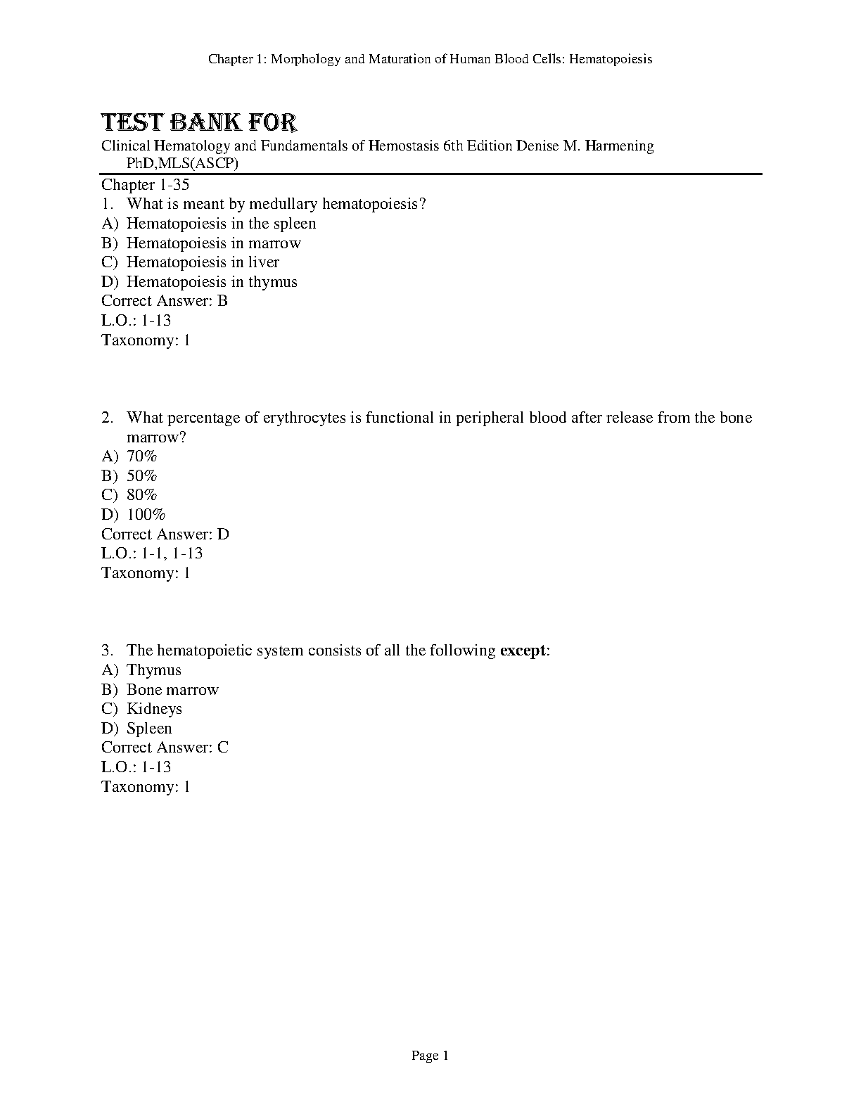 Test Bank for Clinical Hematology and Fundamentals of Hemostasis, 6th Edition by Denise M. Harmening | Complete Q&A