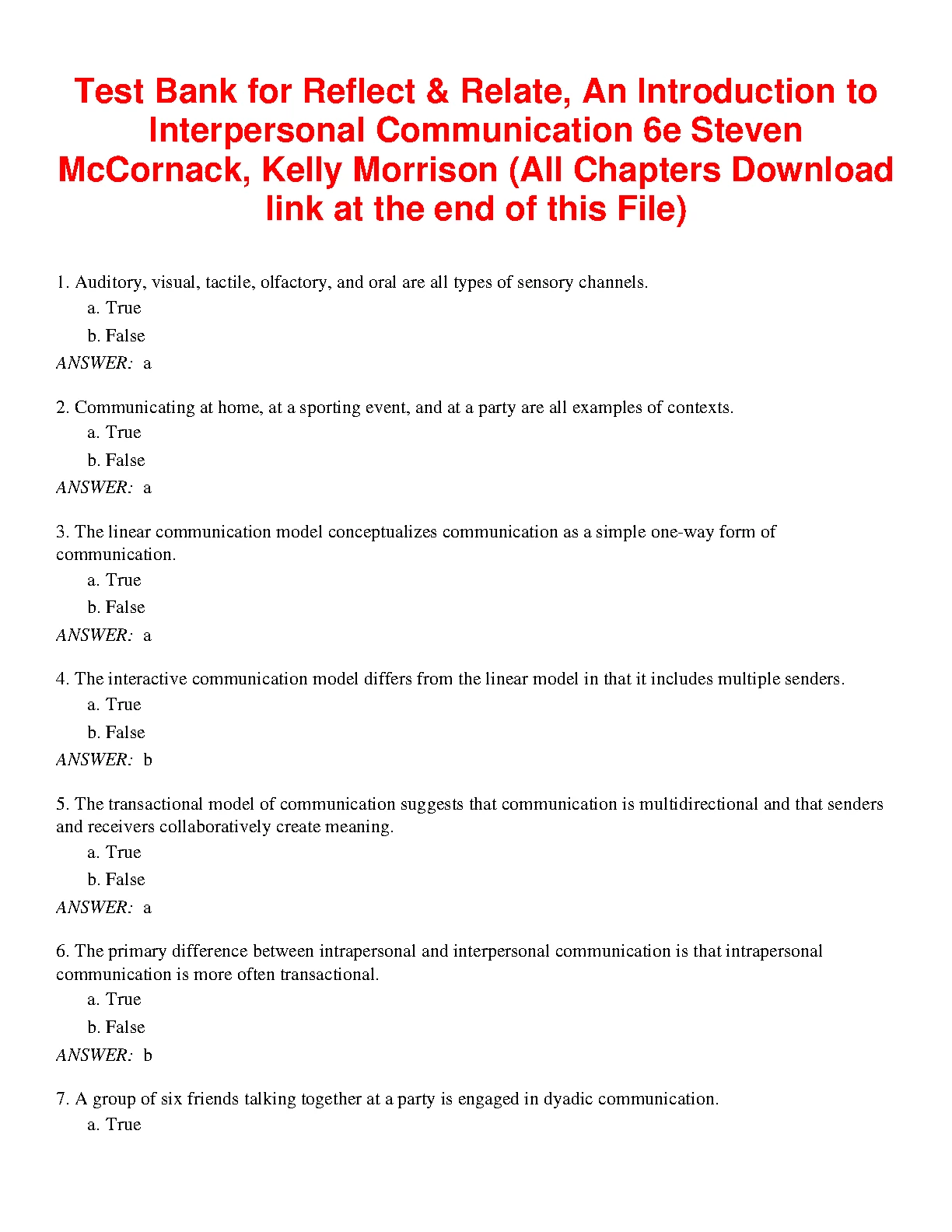 Test Bank for Reflect & Relate, An Introduction to Interpersonal Communication 6TH EDITION BY Steven McCornack, Kelly Morrison (All Chapters )