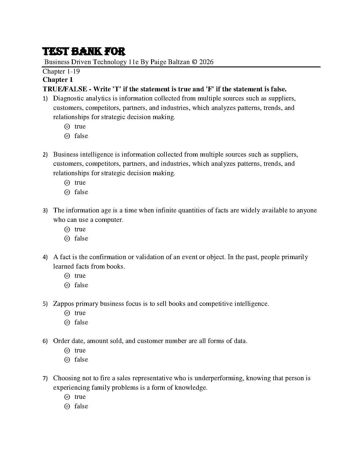 Test Bank for Business Driven Technology, 11th Edition by Paige Baltzan