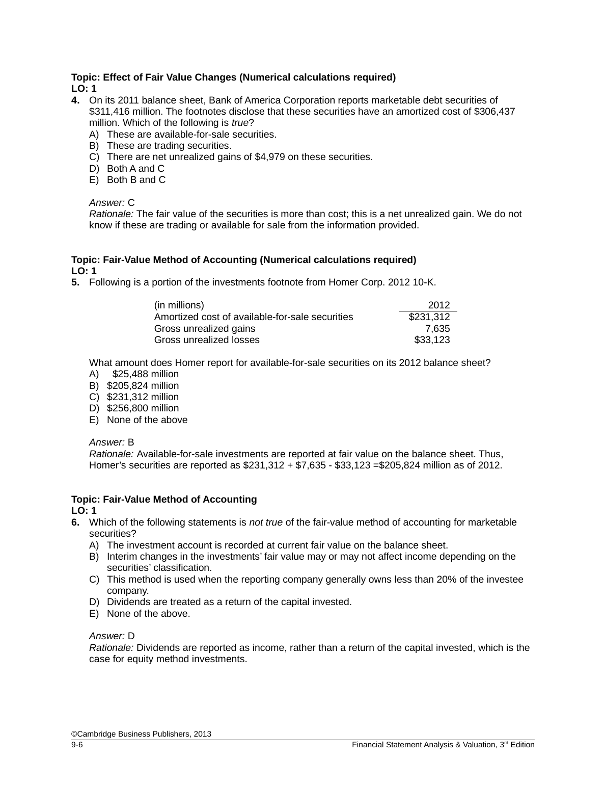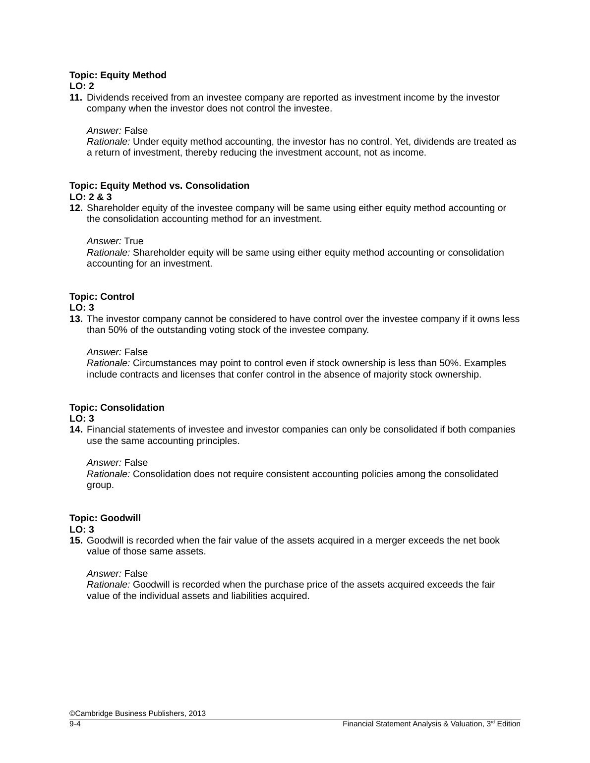 TEST BANK FOR Financial Statement Analysis & Valuation, 3rd Edition Module 9 Intercorporate Entities, Cambridge Business Publishers