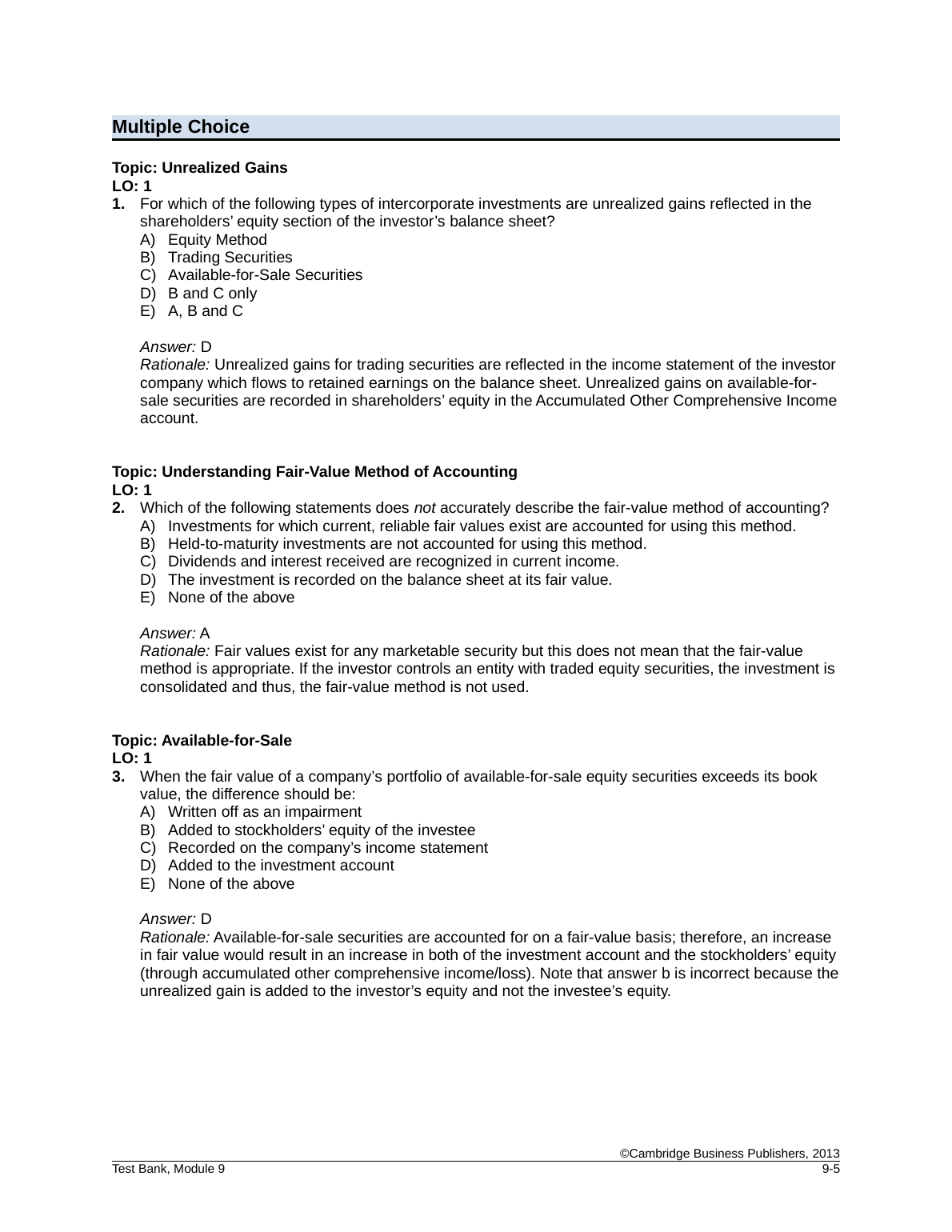TEST BANK FOR Financial Statement Analysis & Valuation, 3rd Edition Module 9 Intercorporate Entities, Cambridge Business Publishers. DOWNLOAD on www.hackedexams.com INSTANTLY.