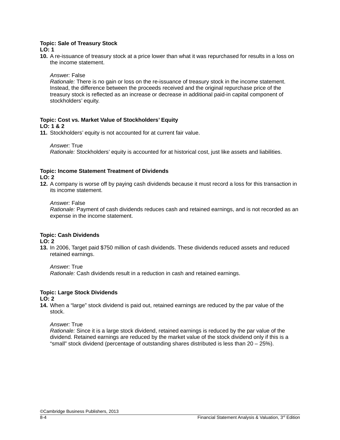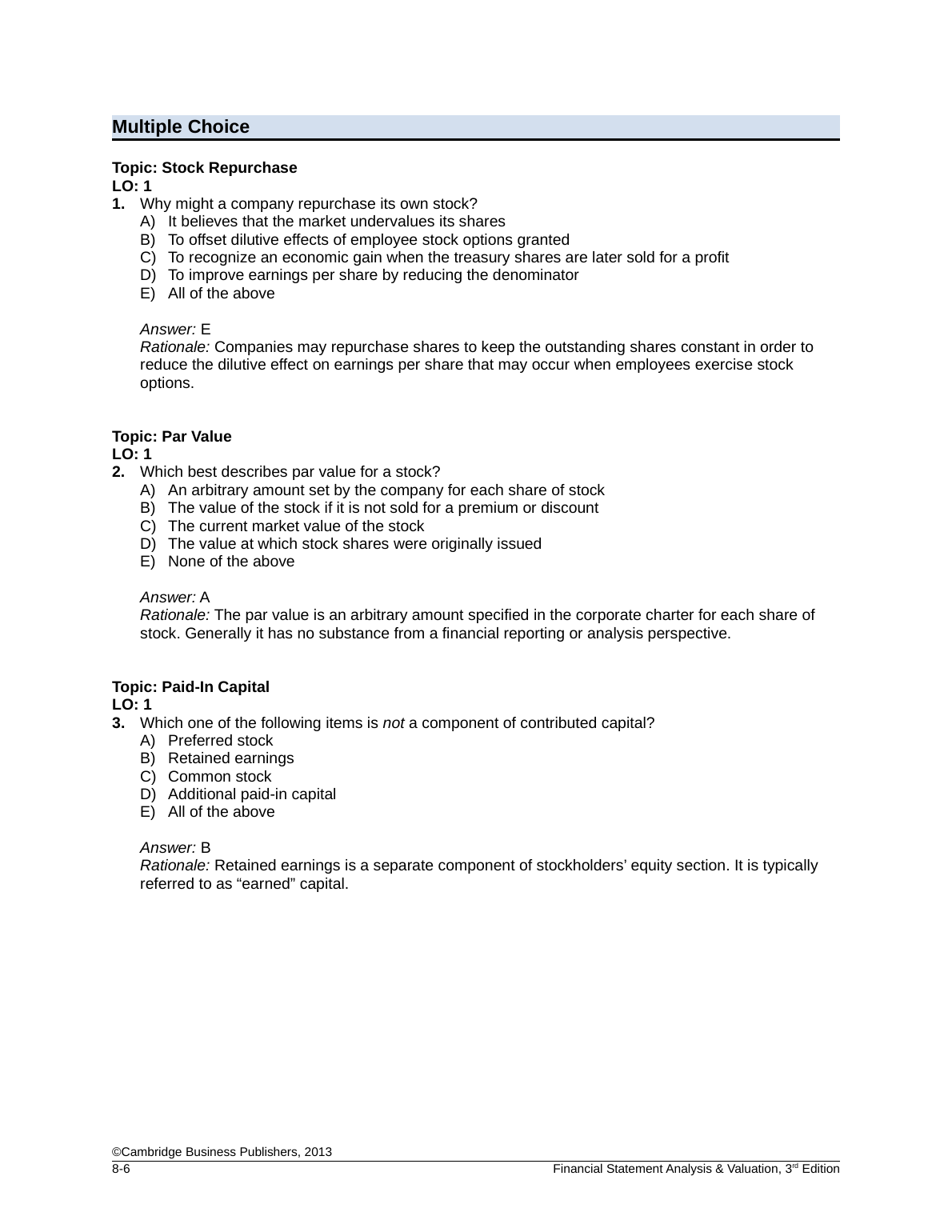 TEST BANK FOR Financial Statement Analysis & Valuation, 3rd Edition, Module 8 Equity Recognition and Owner Financing -Cambridge Business Publishers