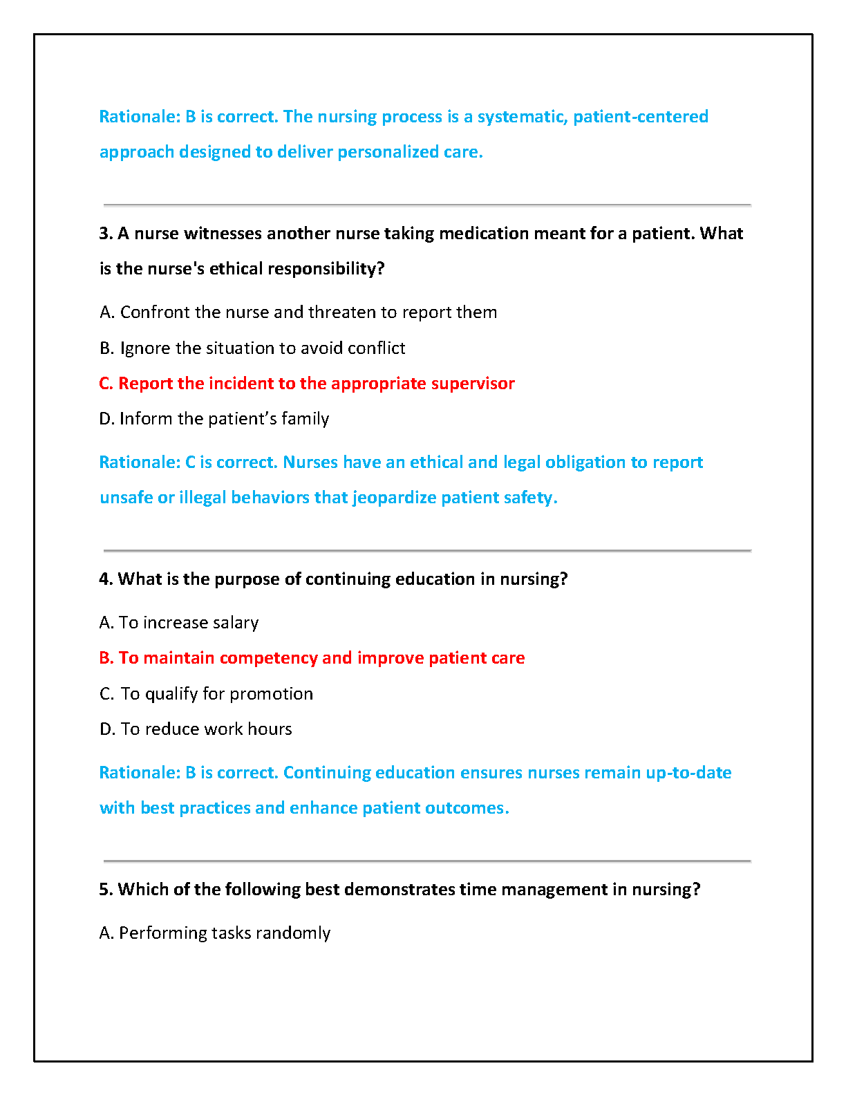 NR-103 Midterm 3 Exam Test Bank: Transition to the Nursing Profession | Chamberlain College | 2024/2025 A+ Graded Questions & Rationales