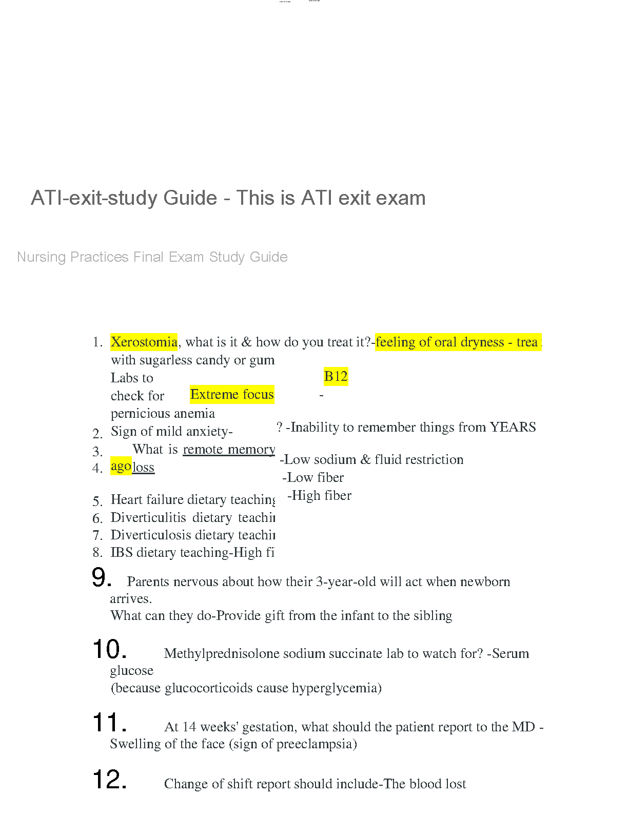 Unlock success on your ATI Exit Exam and Nursing Practices Final with this essential study guide for the 2025/2026 academic year. This resource is expertly crafted to help you pass on your first attempt, providing a concise yet comprehensive review of critical nursing topics. Master key concepts such as patient care for xerostomia and pernicious anemia, dietary management for heart failure and diverticulitis, essential pharmacology like monitoring glucocorticoids, and vital signs of preeclampsia. Streamline your revision, build confidence, and avoid resits with this ultimate exam preparation tool.