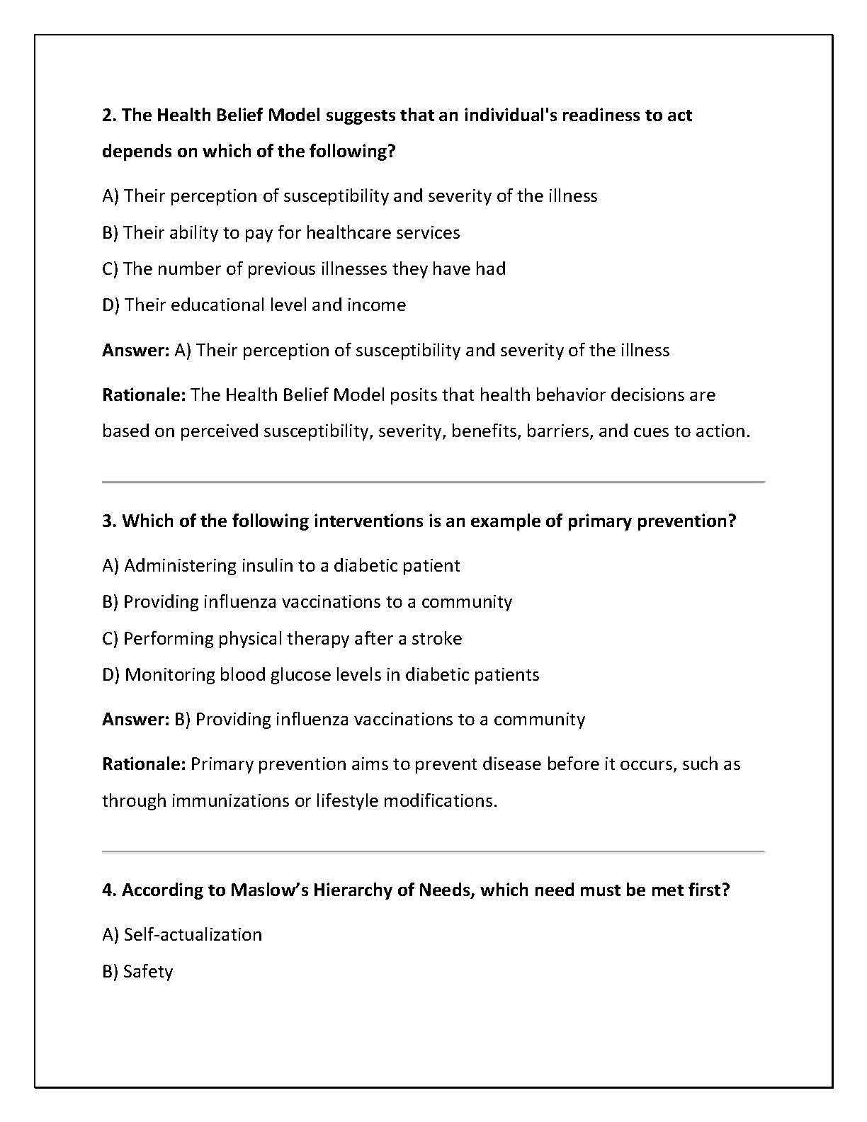 Excel in your NR-222 Health and Wellness course at Chamberlain College of Nursing with this premium test bank for Midterm Exam 3. Updated for the 2024/2025 academic year, this resource is perfectly aligned with 'Health Promotion Throughout the Life Span,' 10th Edition by Carole Lium Edelman, Elizabeth C. Kudzma, and Carol Lynn Mandle. This guide features an extensive collection of questions, complete with verified answers and detailed rationales, designed to deepen your understanding of key concepts. It's the ultimate tool to help you study smarter, build confidence, and secure a top grade on your exam.