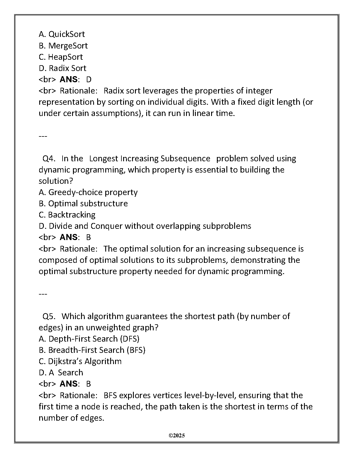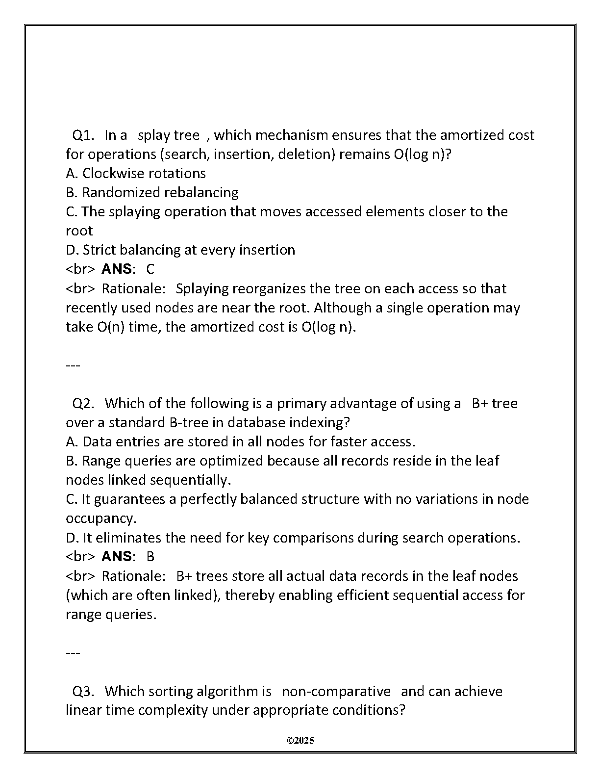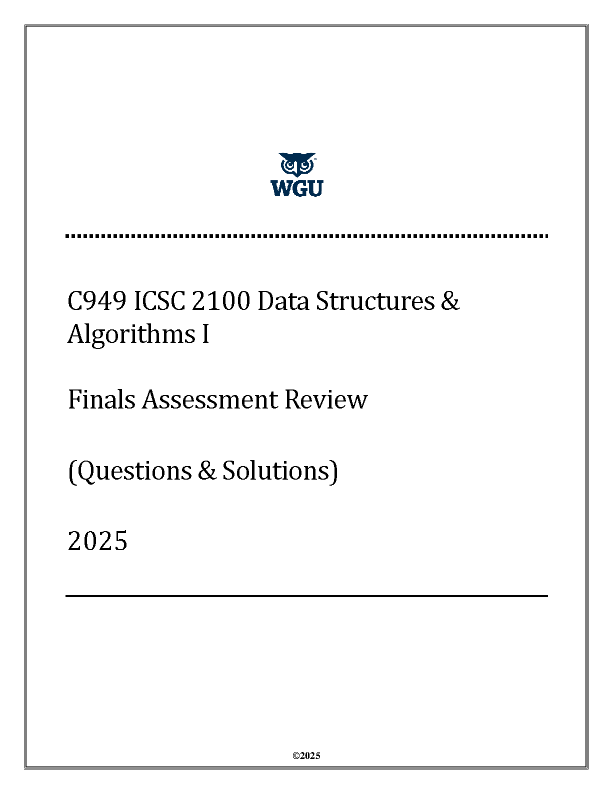 Ace your WGU C949 Data Structures & Algorithms I final exam with this comprehensive assessment review for the 2025/2026 academic year. This test bank provides a complete set of questions and detailed solutions, mirroring the actual final assessment. Master key concepts, practice with exam-style problems, and gain the confidence you need to pass on your first attempt. This is the ultimate study guide to help you succeed in your Data Structures & Algorithms I course.