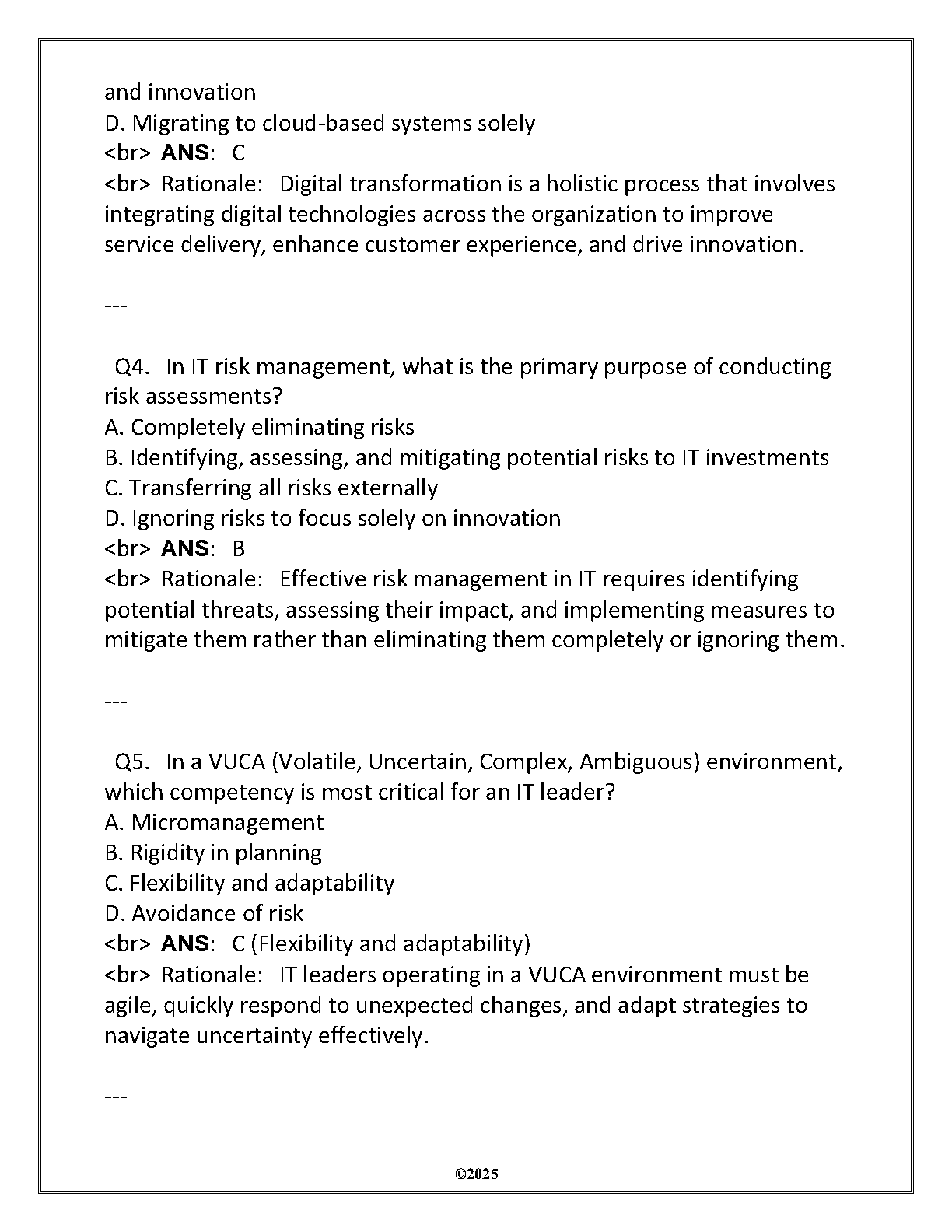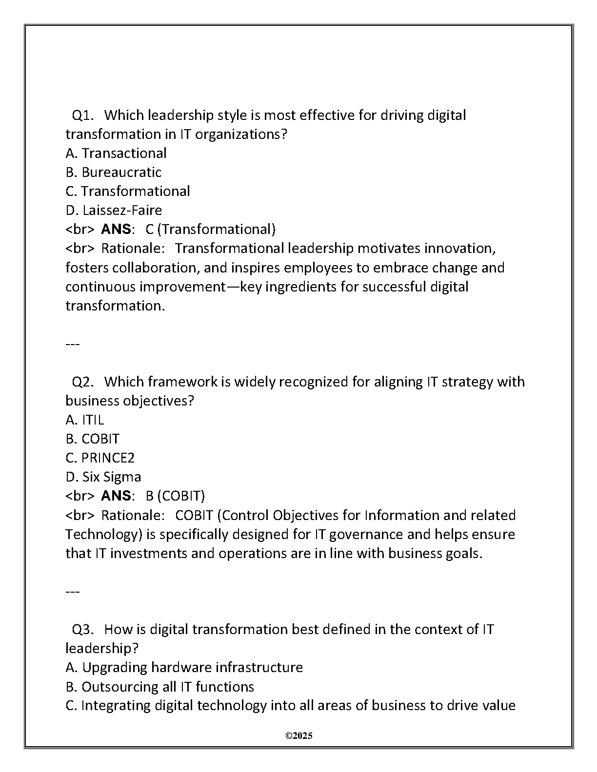 WGU D370 IT Leadership Foundations Final Exam Review 2025/2026: Complete Q&A Study Guide to Pass First Time