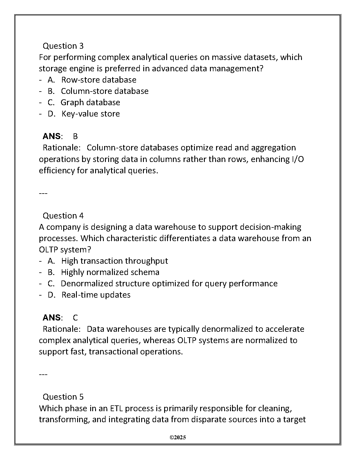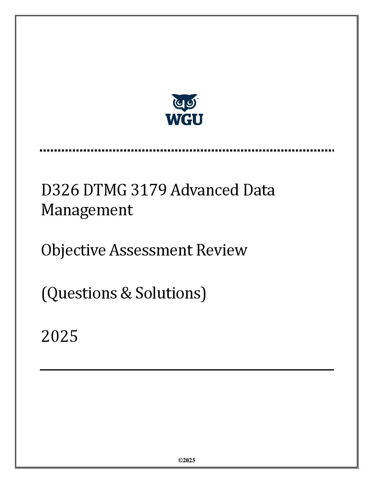 Ace your WGU D326 Advanced Data Management Objective Assessment with our latest 2025 study guide. This comprehensive resource is packed with targeted questions and detailed, verified solutions designed to mirror the actual exam. Master complex data management concepts, prepare effectively, and gain the confidence to pass on your very first attempt. Avoid resits and accelerate your degree progress with this essential DTMG 3179 exam preparation tool.