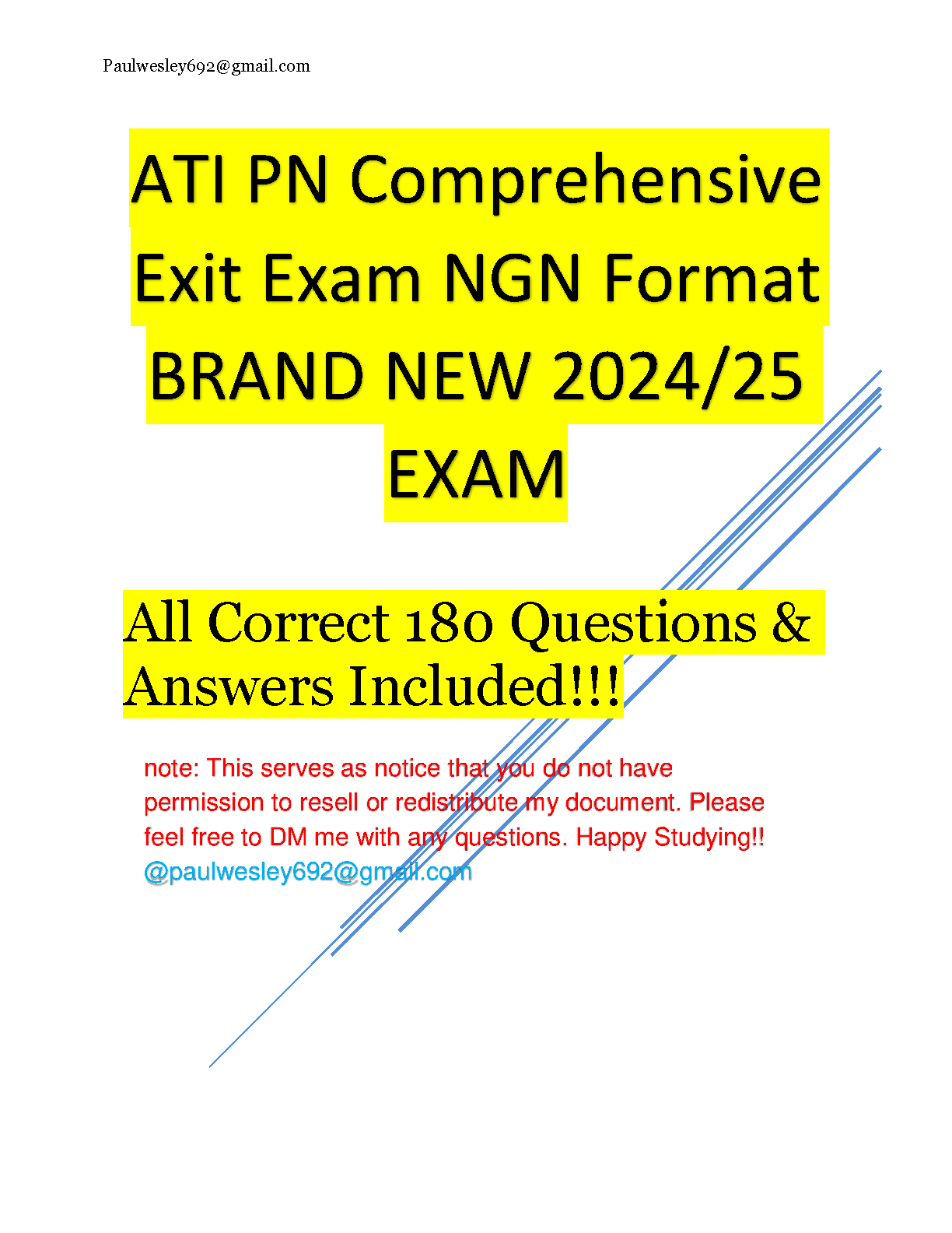 Latest 2025/2026 ATI PN Comprehensive Exit Exam NGN Format Study Guide | 180 Questions & Answers to Pass on Your First Try