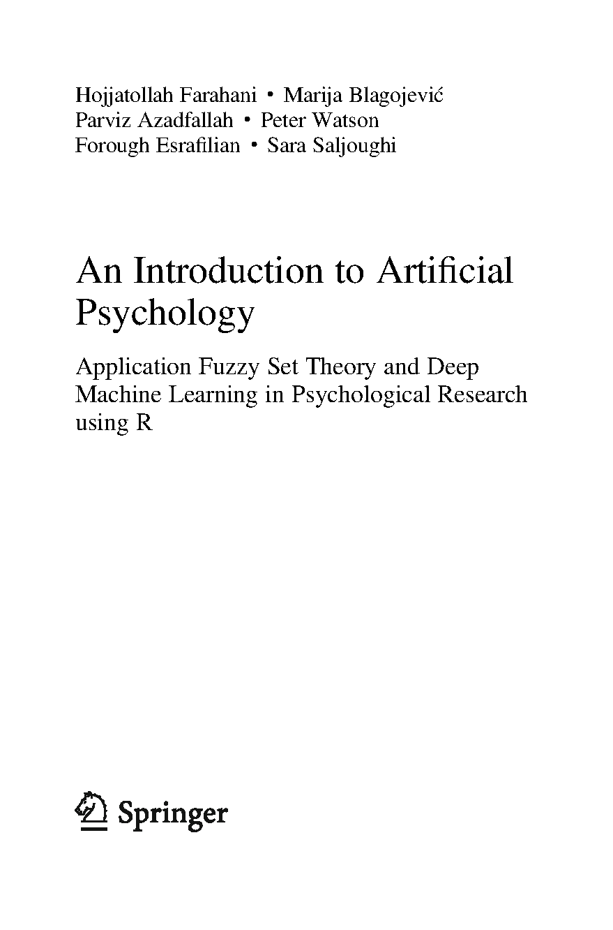 Unlock success in your psychology and AI courses with our definitive 2025/2026 study resource for 'An Introduction to Artificial Psychology, 1st Edition' by Hojjatollah Farahani, Marija Blagojević, Parviz Azadfallah, Peter Watson, Forough Esrafilian, and Sara Saljoughi. This guide is expertly crafted to help you master complex topics such as the application of Fuzzy Set Theory and Deep Machine Learning in psychological research using R. Designed for students aiming to pass their exams on the first try, this resource breaks down challenging concepts into easy-to-understand sections, ensuring you are fully prepared and confident, thus avoiding any need for resits.