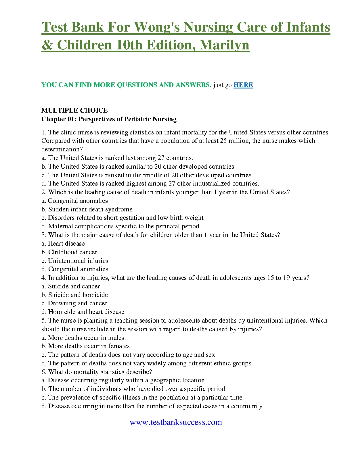 Test Bank For Wong's Nursing Care of Infants & Children 10th Edition, Marilyn . DOWNLOAD on www.hackedexams.com INSTANTLY.