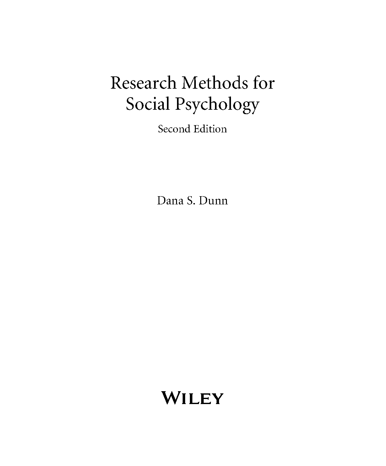 Test Bank for Research Methods for Social Psychology, 2nd Edition by Dana S. Dunn