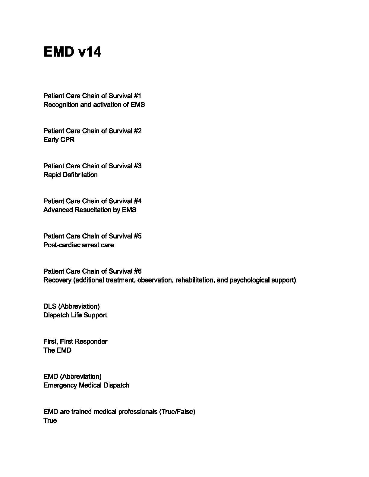 Unlock success in your emergency services career with our comprehensive test bank for the IAED Emergency Medical Dispatch (EMD) v14 certification exam. This expertly curated resource features a full range of verified questions and detailed answers, covering critical topics such as the complete Patient Care Chain of Survival, essential abbreviations like DLS and EMD, and foundational knowledge for dispatch professionals. Our EMD v14 exam prep is designed to provide you with the confidence and knowledge needed to pass your certification on the first attempt, ensuring you are fully prepared for real-world scenarios. Get instant access and start studying smart today!