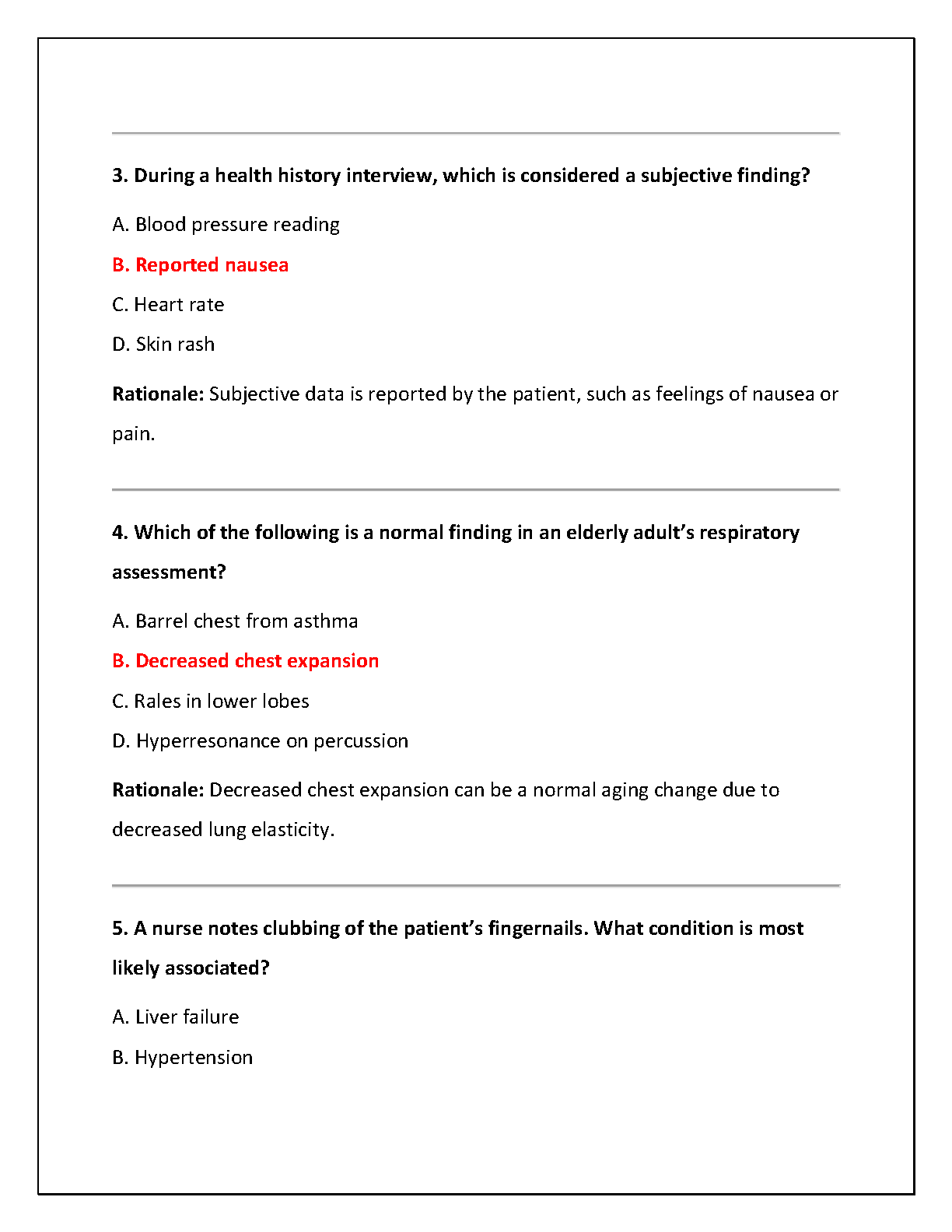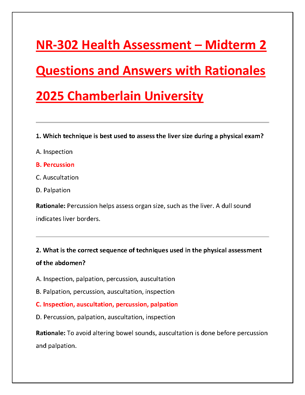 NR-302 Health Assessment Midterm 2 Test Bank - Wilson & Giddens 7th Edition | Chamberlain University | Verified Q&A with Rationales