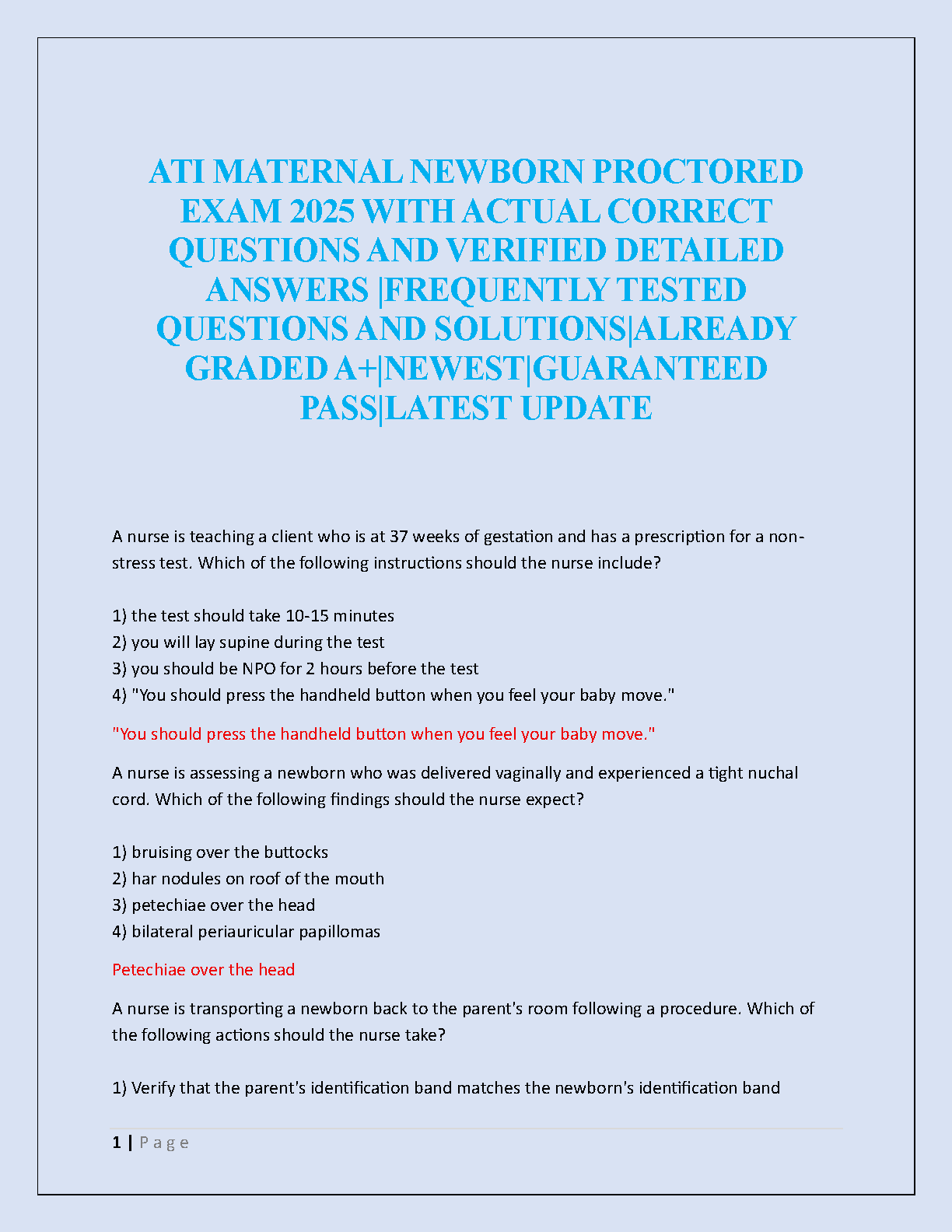 ATI Maternal Newborn Proctored Exam 2025/2026 Study Guide: Actual Questions & Verified Answers for First-Time Pass