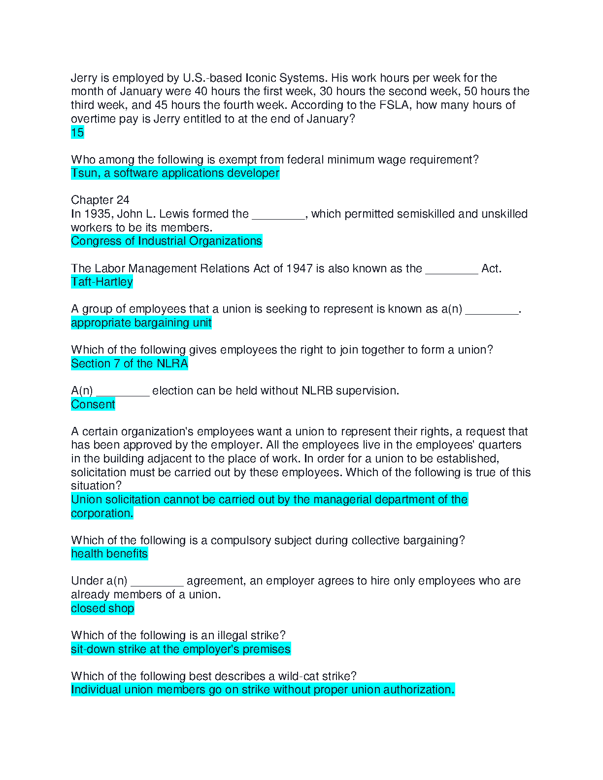 BSAD 4210 Business Law Test 3 Test Bank | Employment & Labor Law Chapter | Questions and Verified Answers