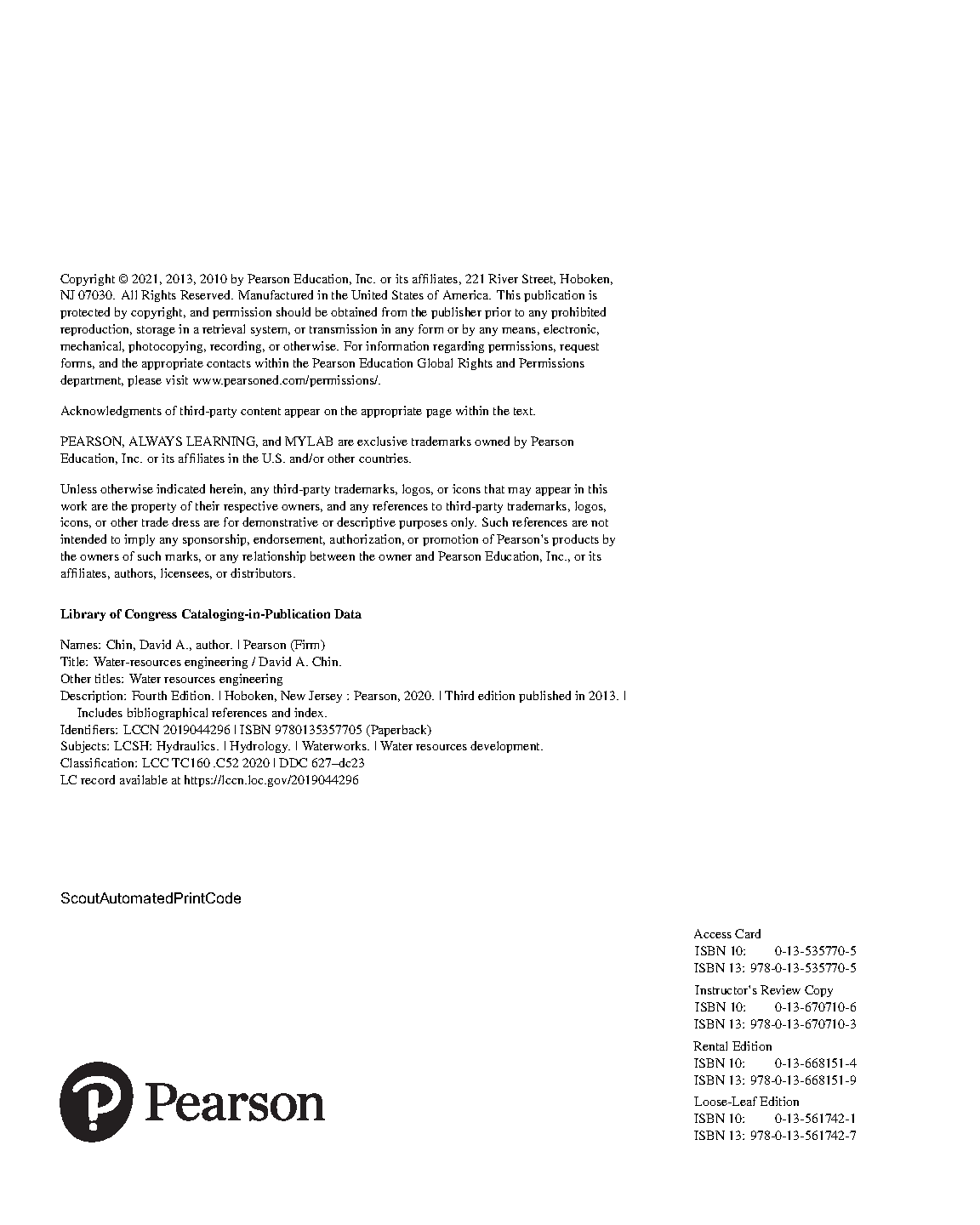Test Bank for Water-Resources Engineering, 4th Edition by David A. Chin