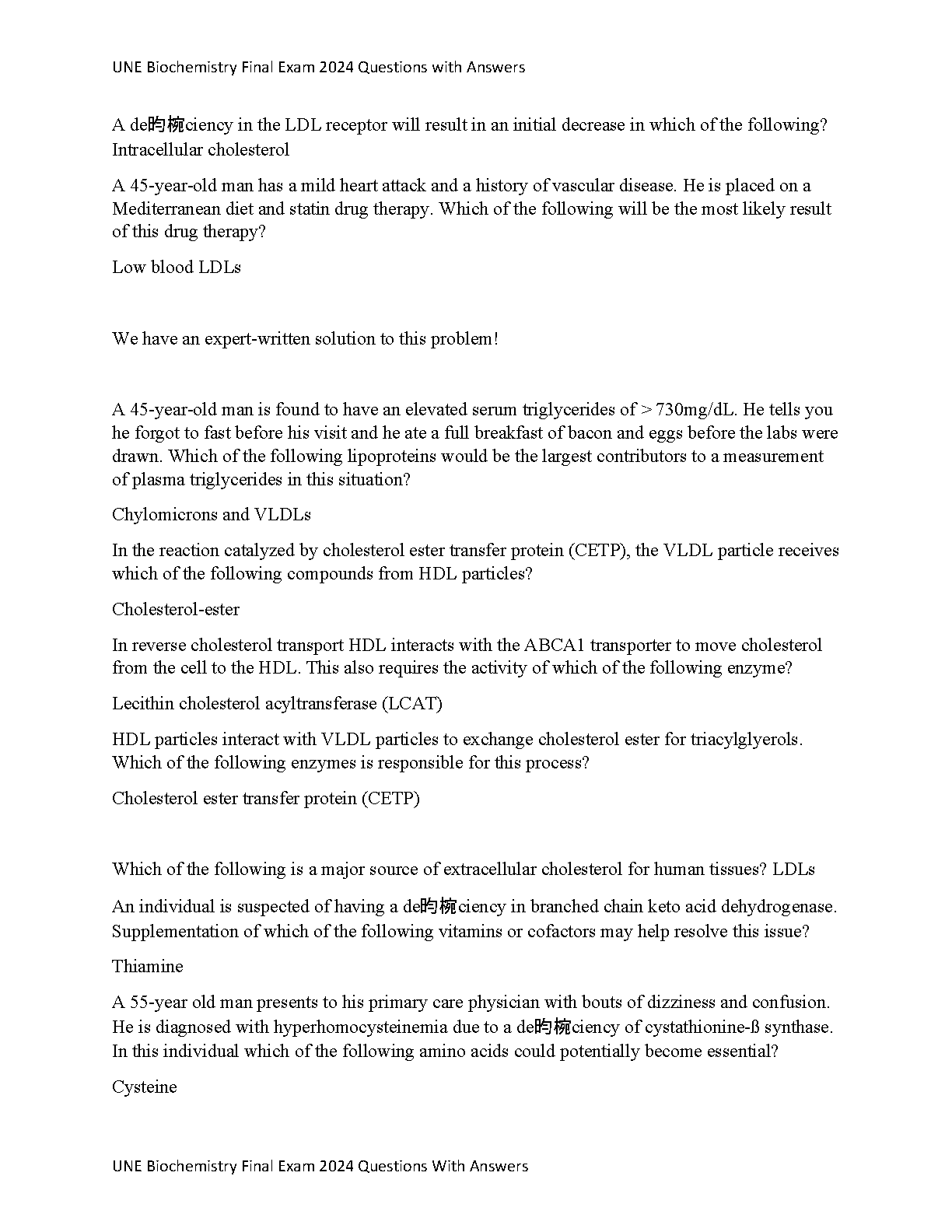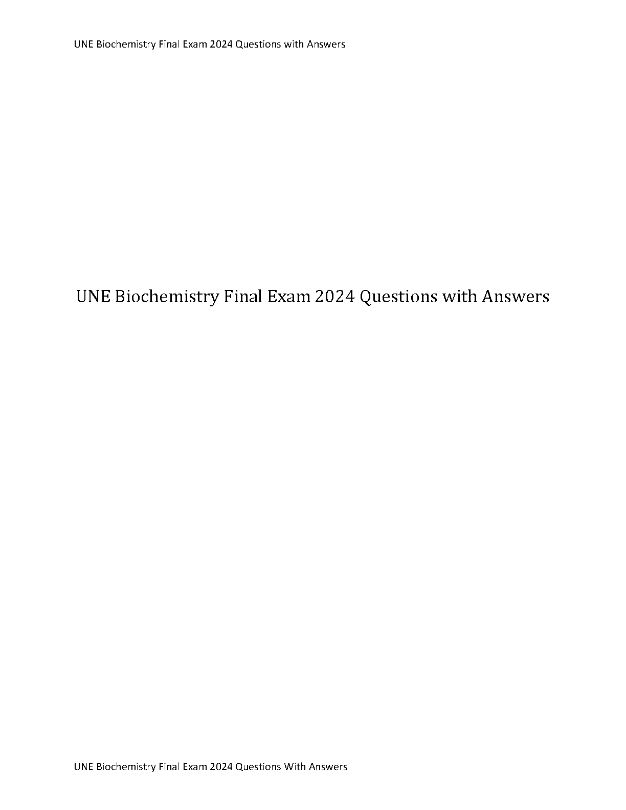 Ace your UNE Biochemistry final exam with our comprehensive 2024 Test Bank. This essential study guide contains a complete set of questions and detailed, verified answers from the latest exam. Designed to help you master the material, understand the exam format, and boost your confidence, this resource is your key to passing on the first attempt and avoiding stressful resits. Download now and start preparing for success!